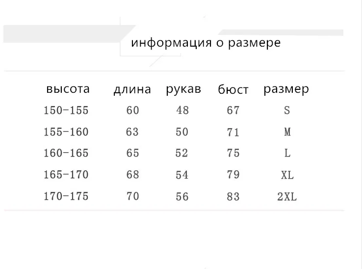 Примечание: 1. Из-за таких факторов, как дисплей пикселей, поэтому может быть небольшая разница в цвете. 2. Из-за различных методов измерения возможна погрешность в 1-3 см. 3. Мы предлагаем вам выбрать на 1-2 размера больше при оформлении заказа (если ваша фигура очень плотная)