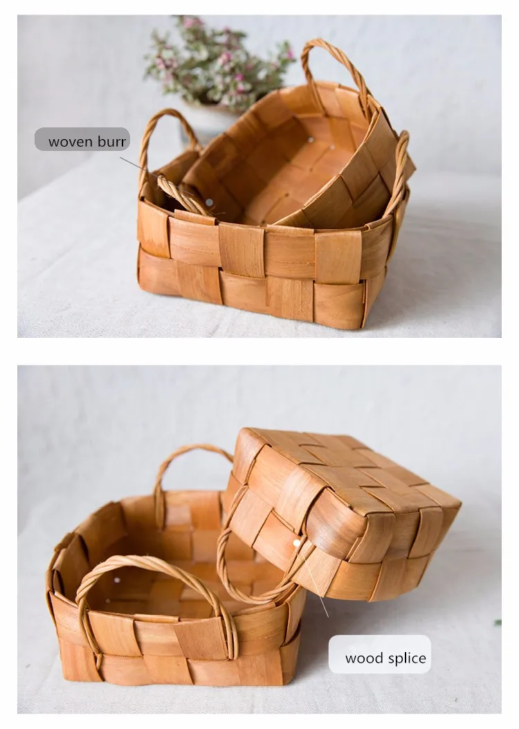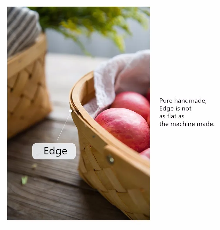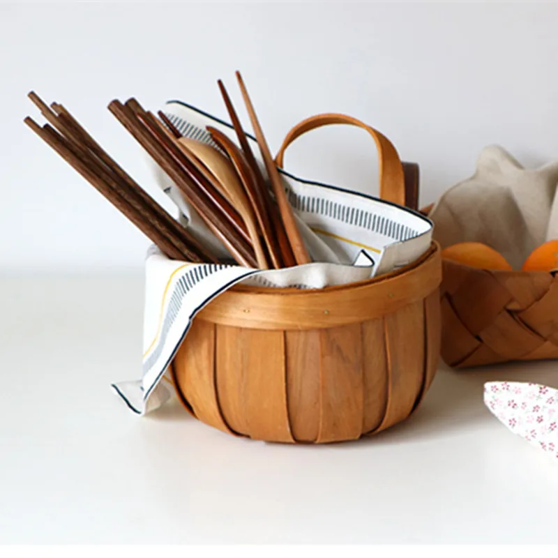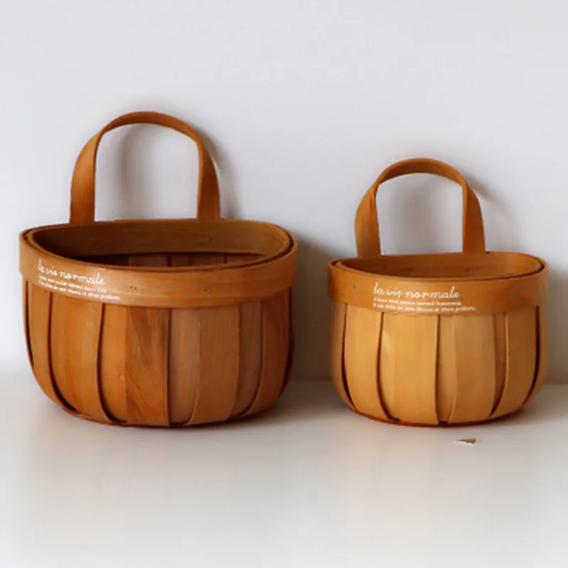 Плетеные корзины ручной работы с натуральной каймой, контейнер для фруктов, хлеба, закусок, кухонный настенный цветочный горшок, деревянная корзина для хранения