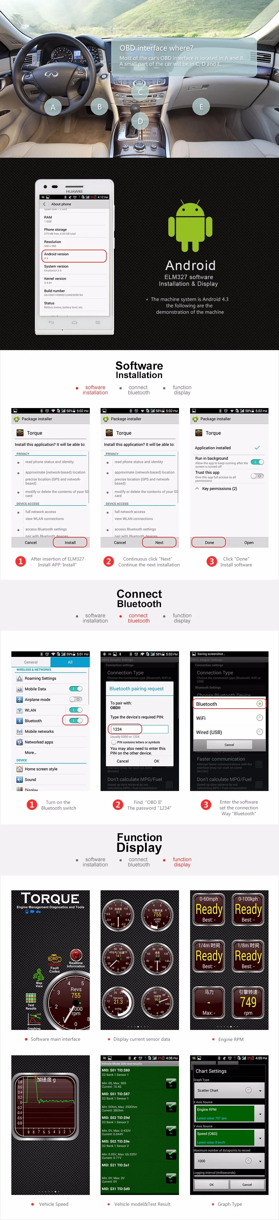 1 * ELM327 OBD2 bluetooth диагностический интерфейс