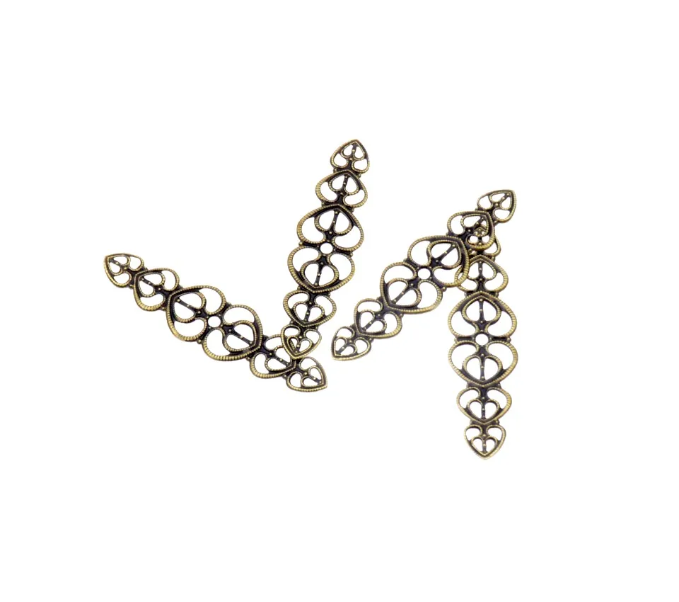 Филигранные соединители в форме сердца, бронзовыеЗолотыесеребряные, отделка декором х1, 4 см, 20 шт.