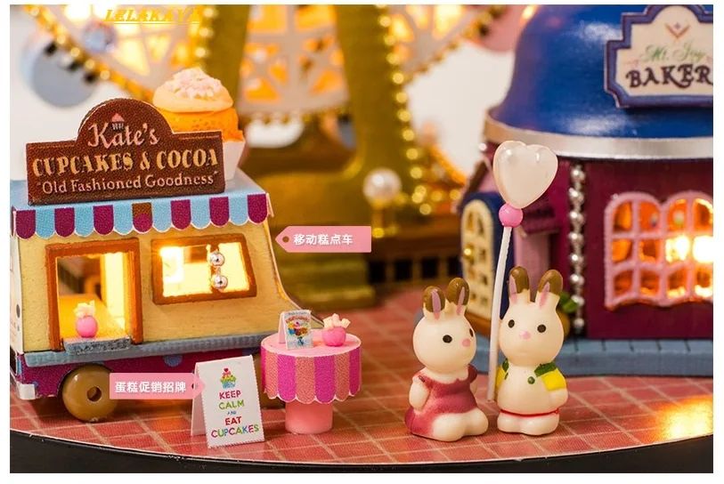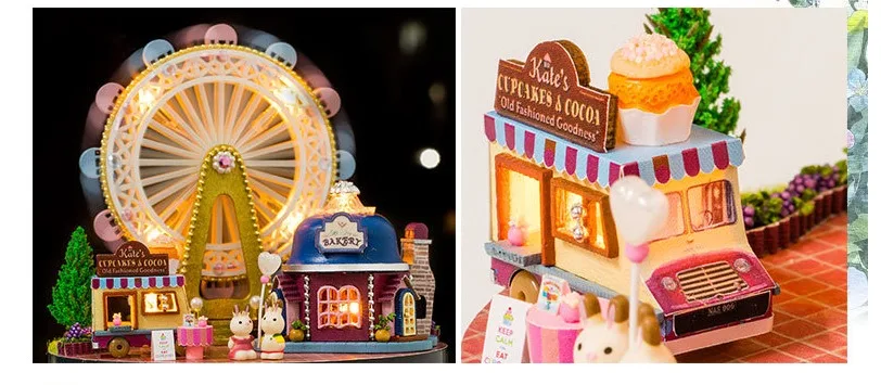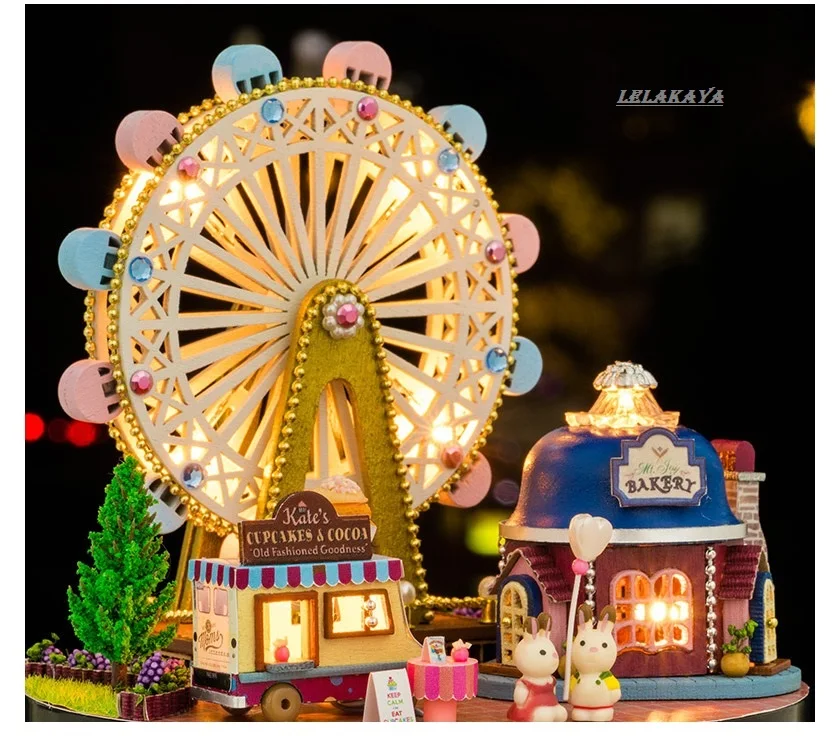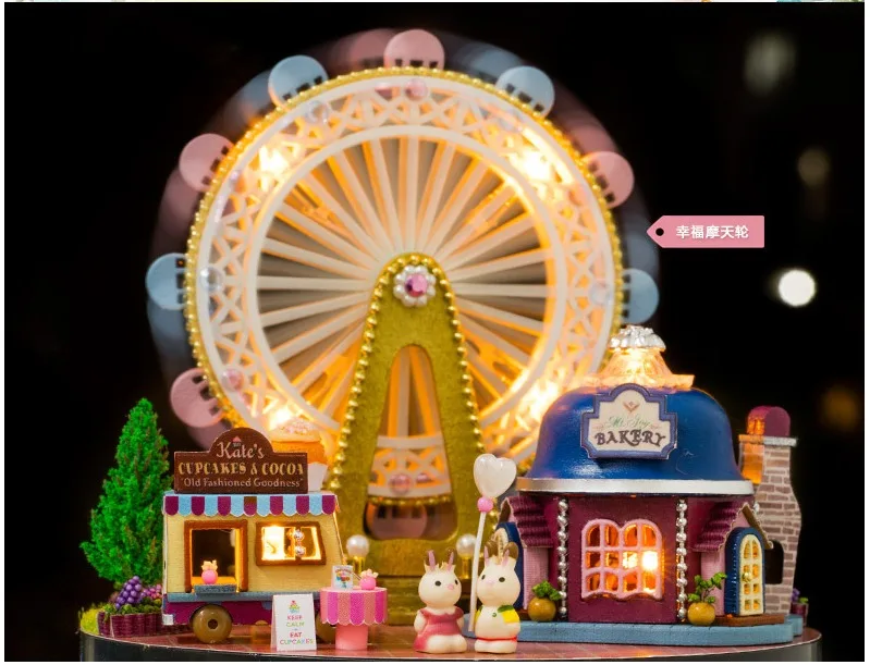 Кукольный домик колесо обозрения, деревянный парк, кукольные домики, миниатюрный дом для сборки, кукольный домик сделай сам, набор игрушек, фигурка Тоторо