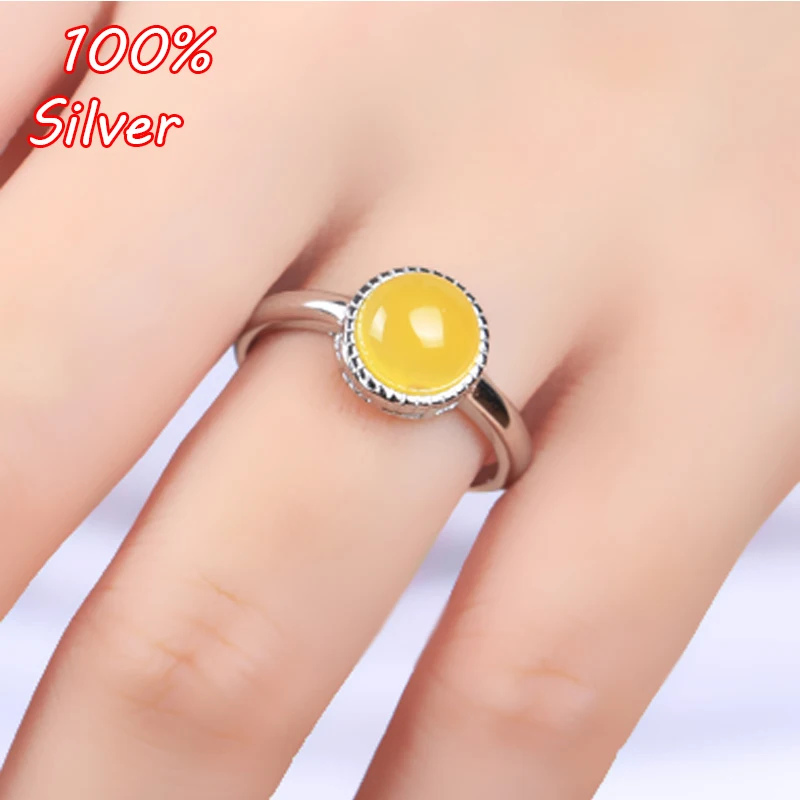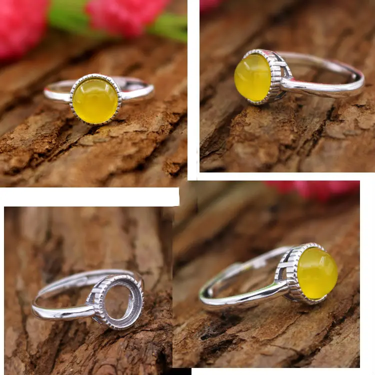 Кольца с кабошоном из белого золота 925 пробы, 8 мм, с янтарным опалом, Агатом, бирюзой