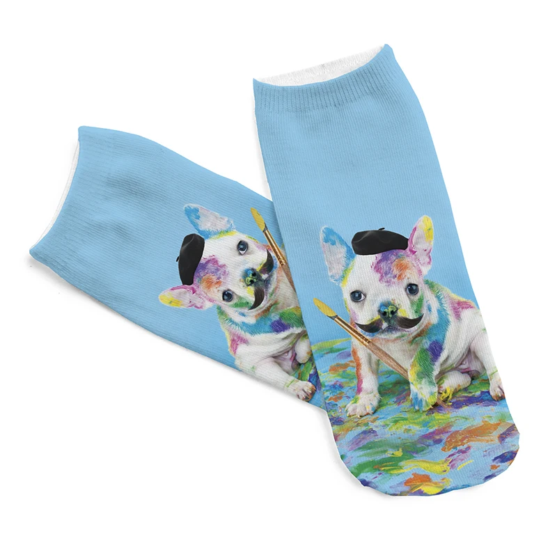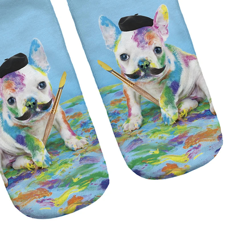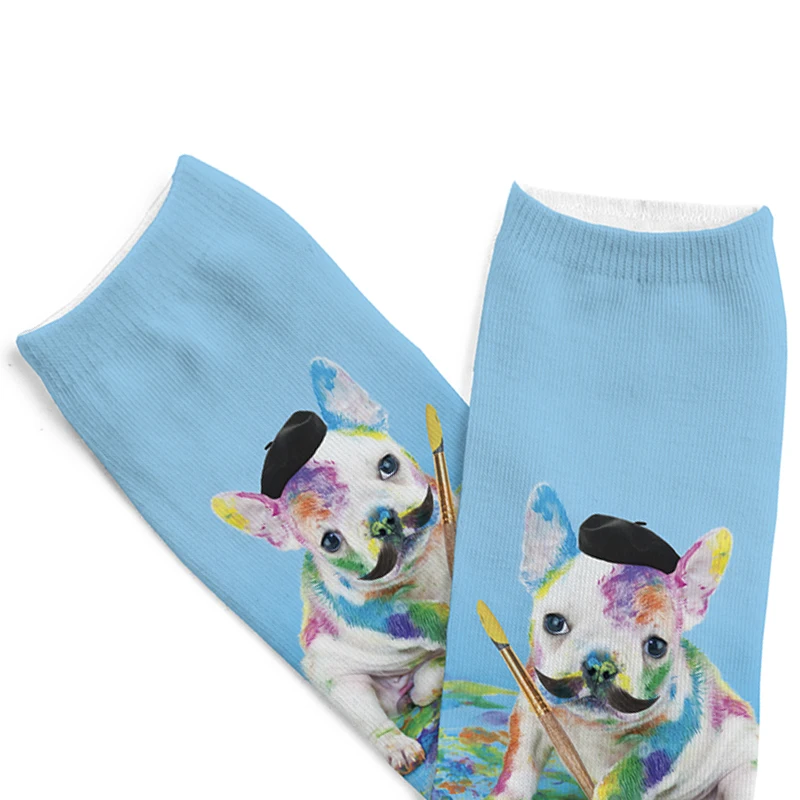 Короткие носки для мужчин и женщин, хлопковые Повседневные носки с забавным 3d-рисунком художественной собаки, с низким вырезом на щиколотке, с мультяшным рисунком, 1 пара