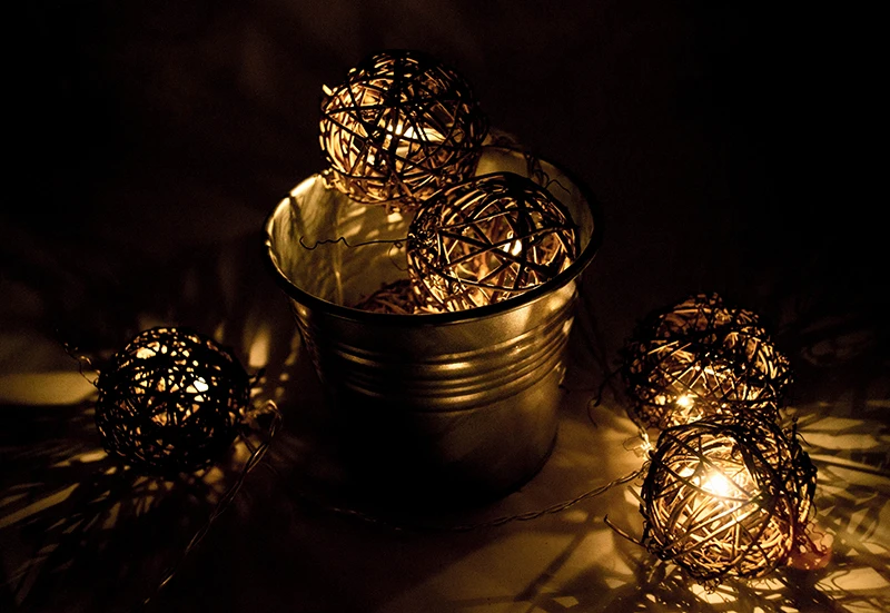 1 шт. 10Или20 коричневых ротанговых шаровых гирлянд на батарейках.