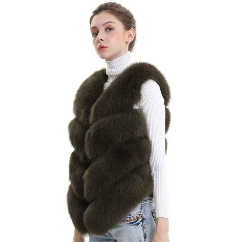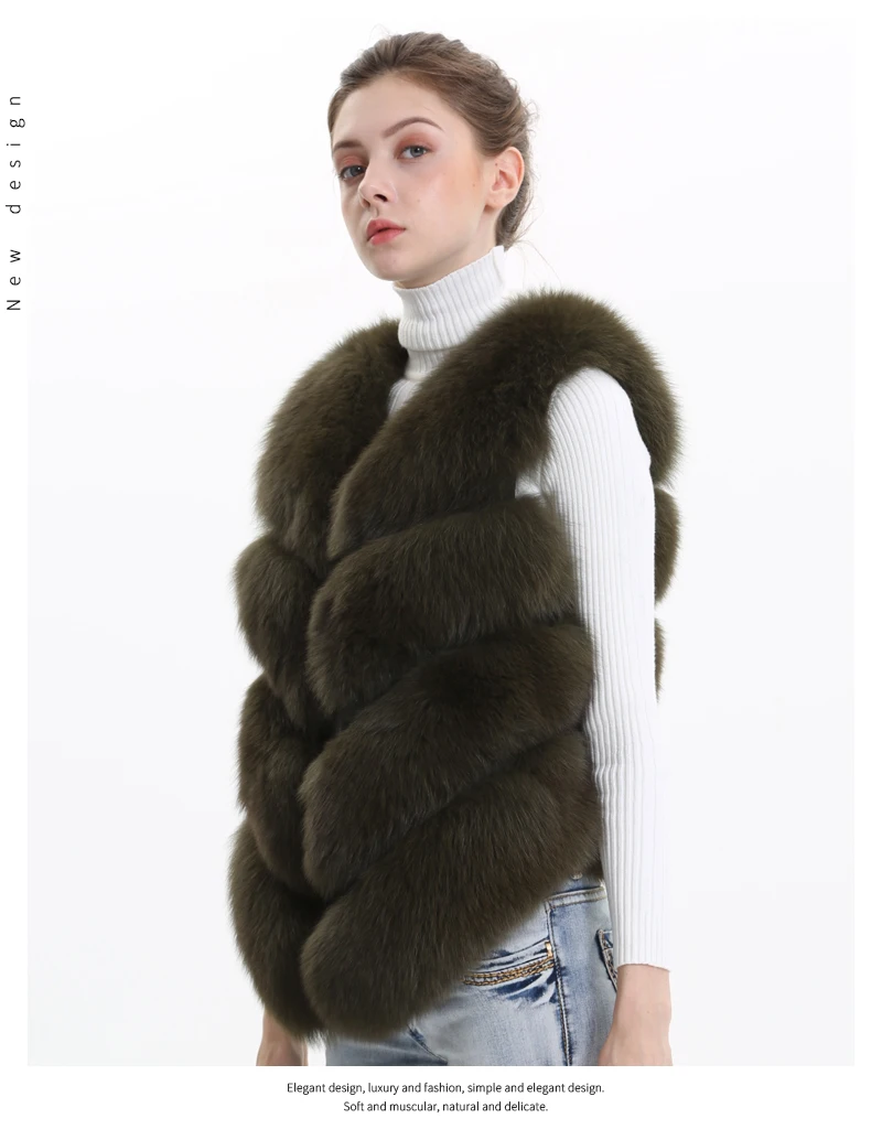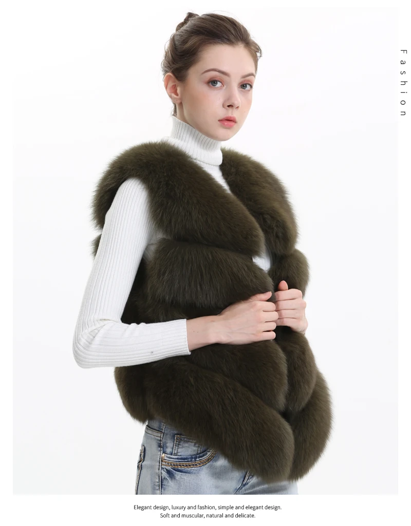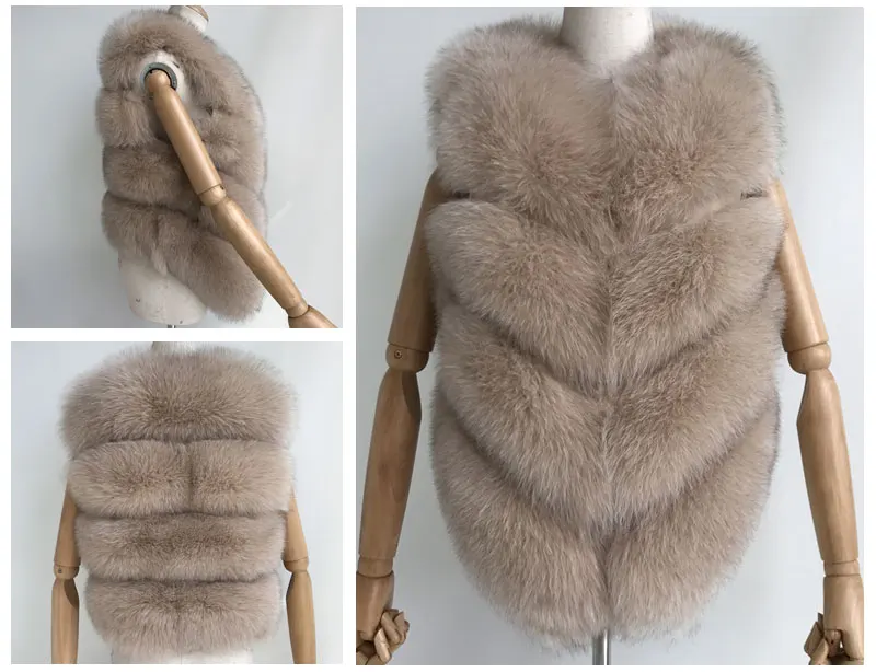 Женский жилет с натуральным лисьим мехом, осенне-зимний жилет без рукавов с 4 полосками, натуральный мех, женский жилет с натуральным мехом