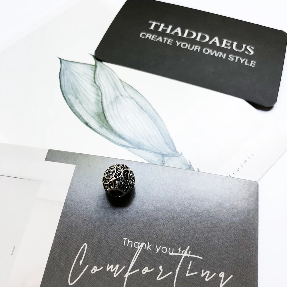 Бусины черные раздавленные, серебряные и стразы, подходят для браслета, европейские ювелирные изделия, подарок на День Благодарения для женщин и мужчин