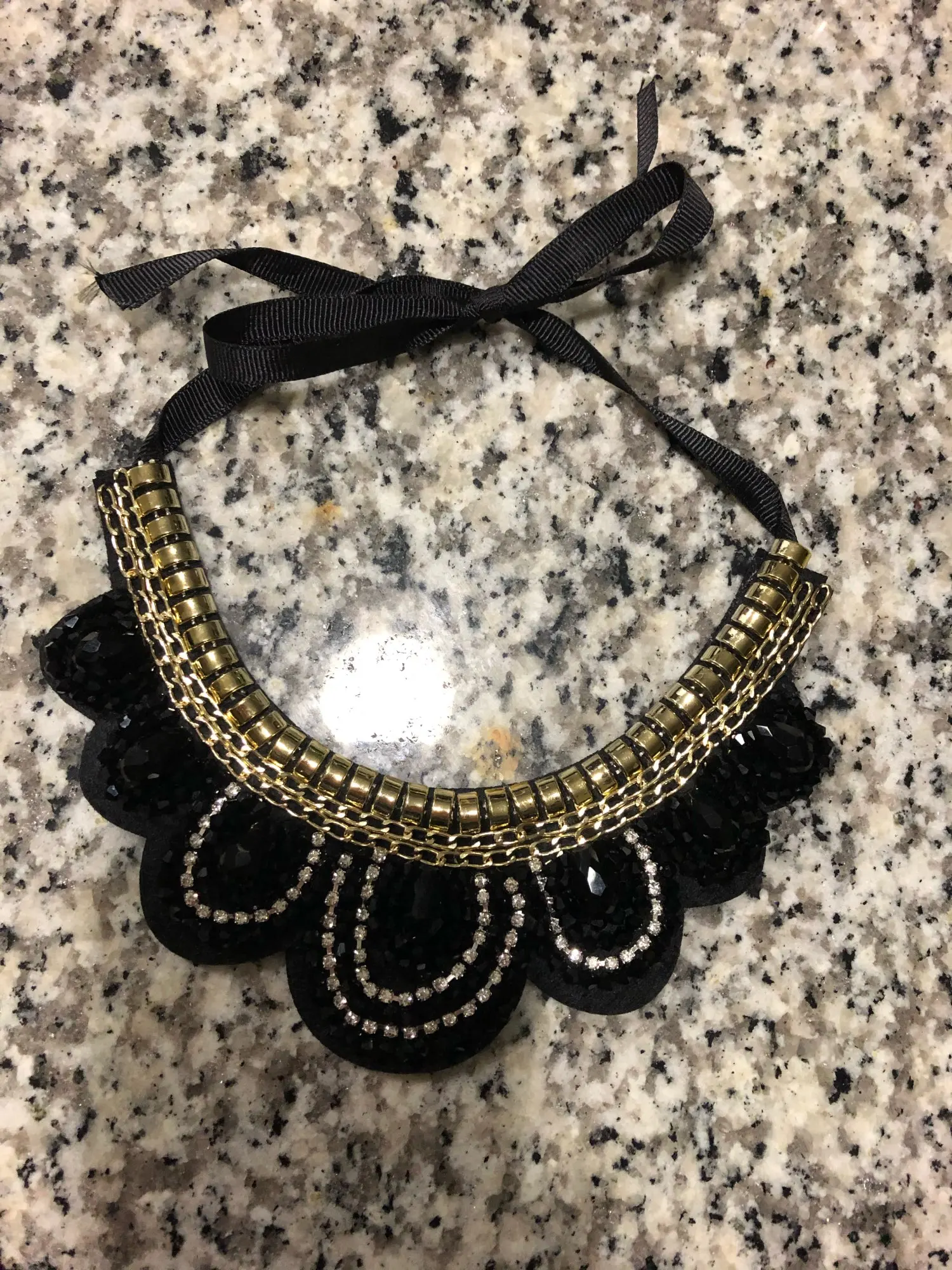 Поставляется с золотой цепочкой и черными бусинами, которые я заказал весь черный
