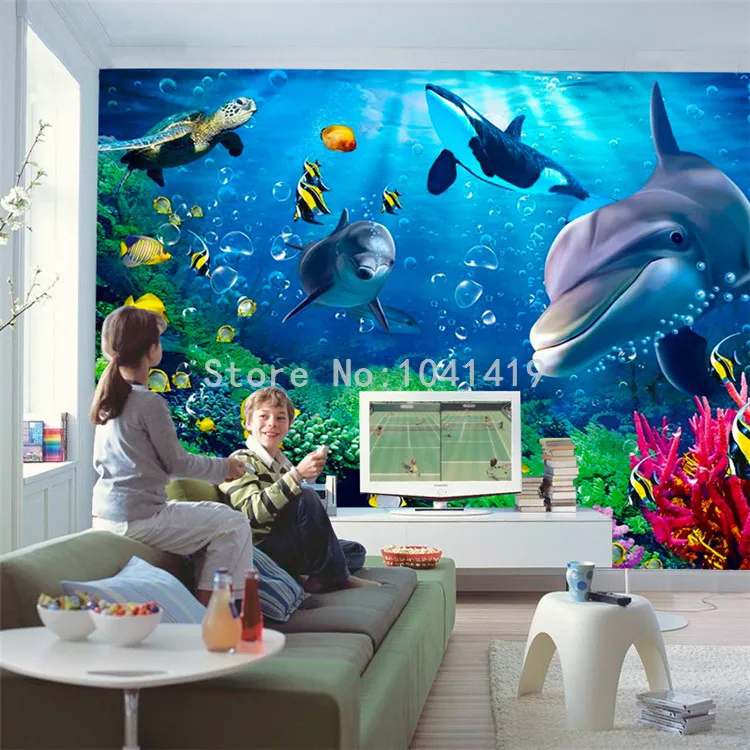 3D обои на заказ, подводный мир, дельфин, Мультяшные детские 3D настенные фотообои, обои