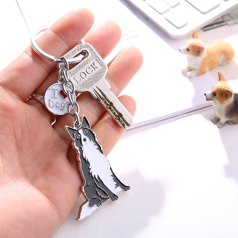 Женские и мужские брелки с подвеской Border Collie, серебристые металлические брелки из цинкового сплава для домашних животных и собак, брелки для автомобильных ключей
