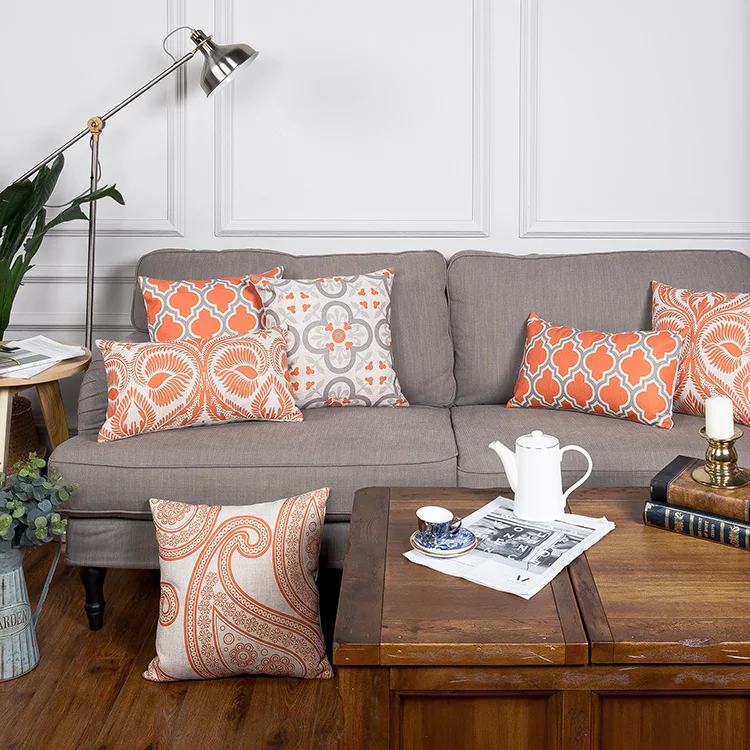 Винтажная Подушка оранжевого и серого цвета с геометрическим рисунком, наволочка в стиле бохо, декоративная подушка