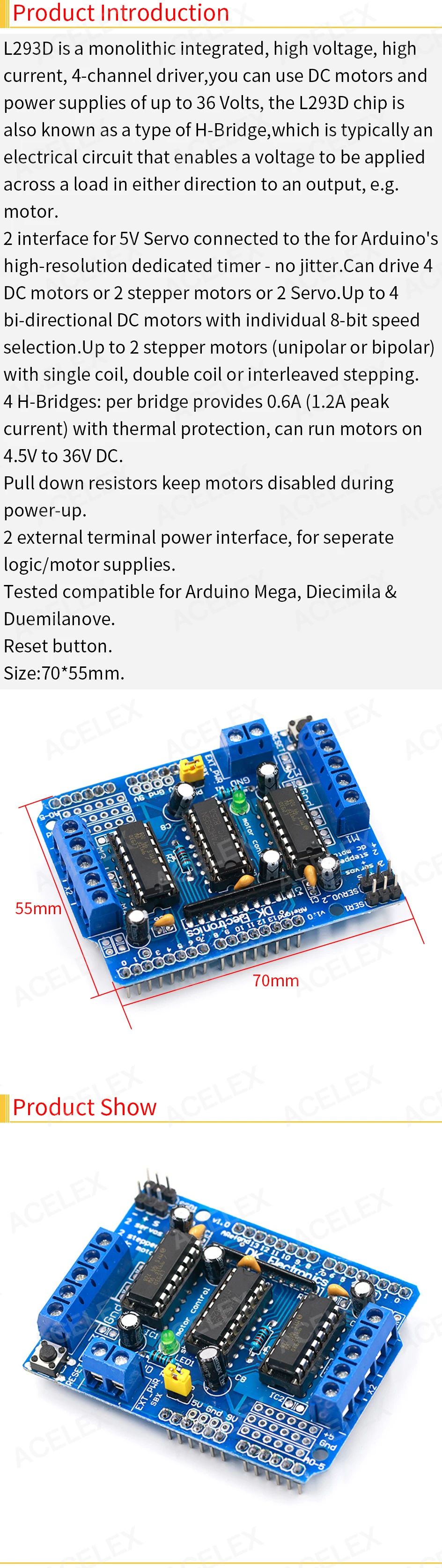 Щит управления двигателем L293D, плата расширения привода для двигателя Arduino