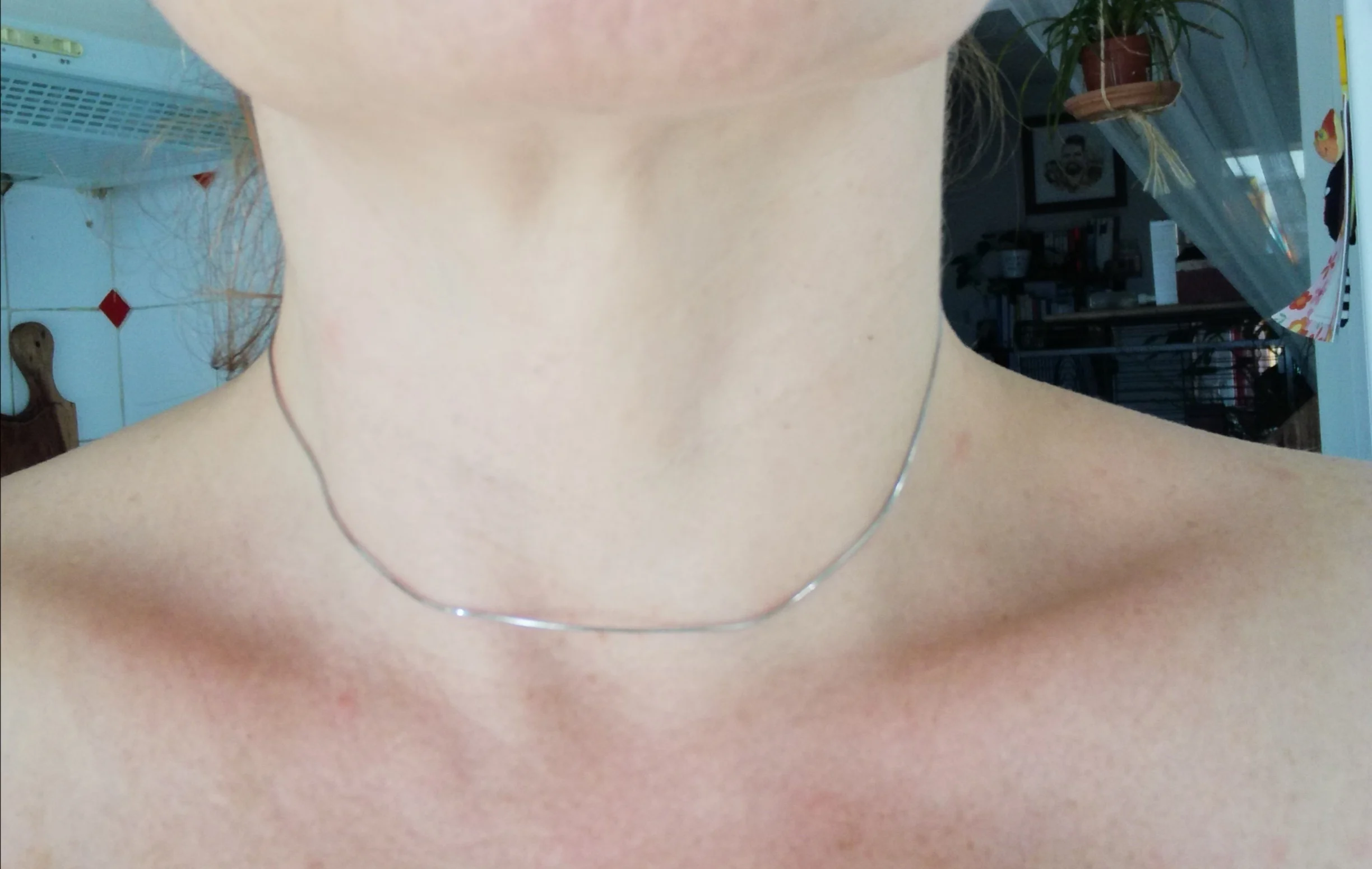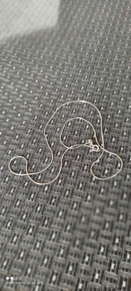 прекрасная, блестящая цепь. не толстая, но и не тонкая. конечно, могут быть заломы, но она того стоит. потому что выглядит прилично. можно вещать кулоны, она хорошо подчеркивает.
