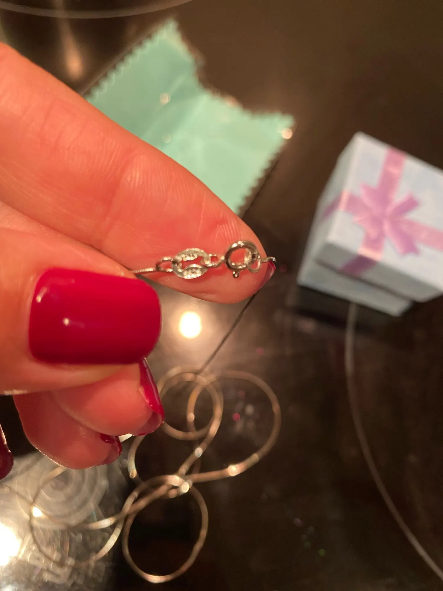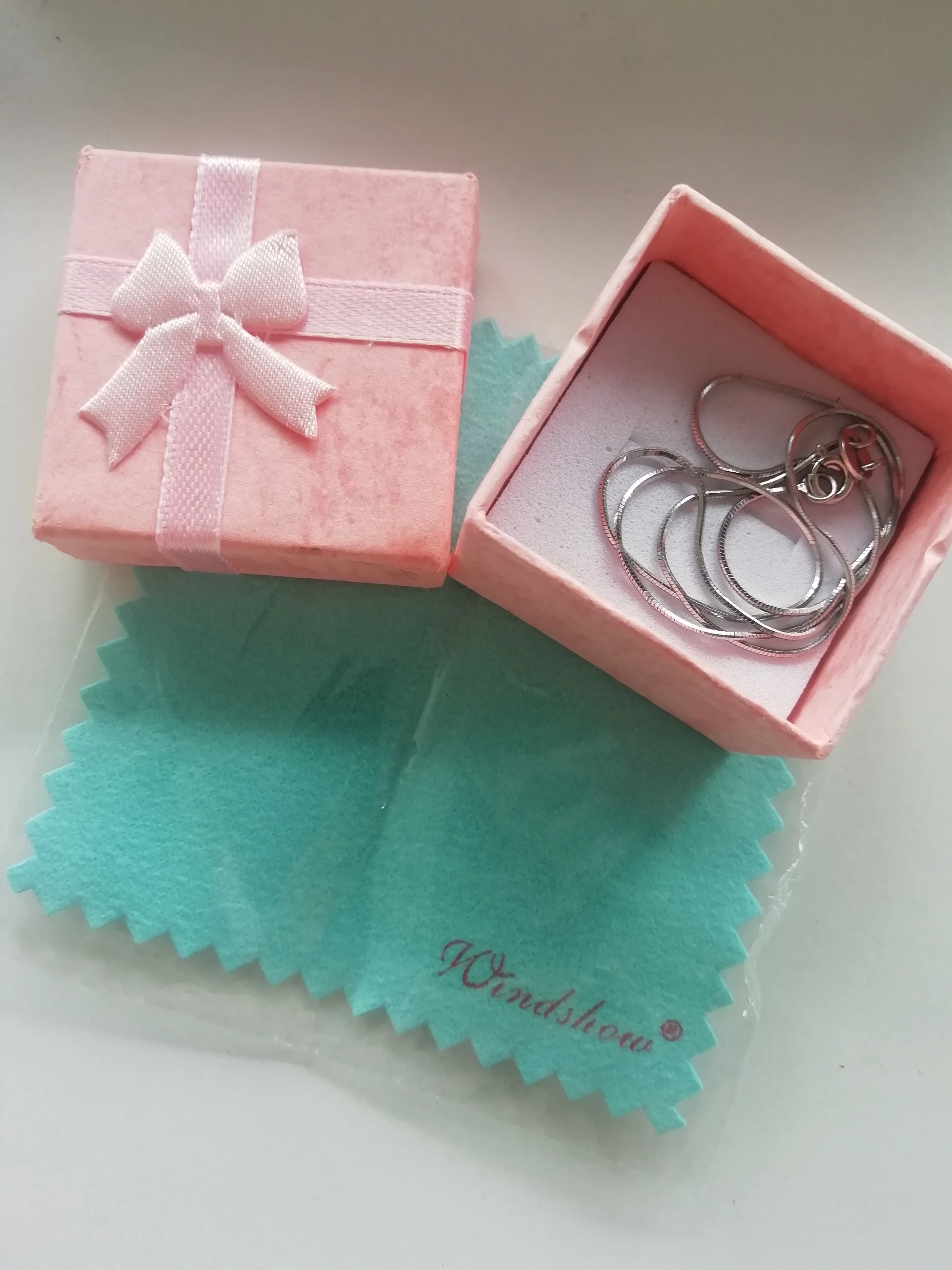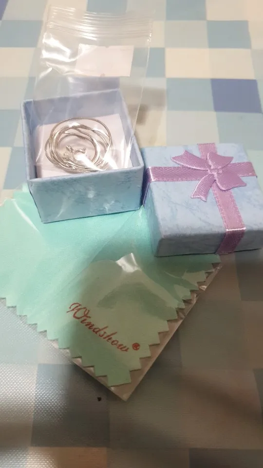Тонкая красивая цепочка. Продавец положил в подарок маленькую салфетку, но я её случайно разрезала, когда открывала посылку.