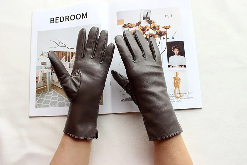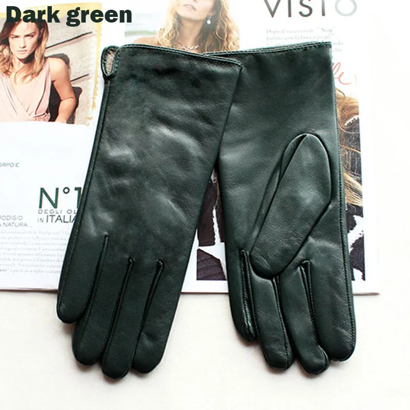 Цветные перчатки из овчины, женские кожаные прямые стильные флисовые перчатки с подкладкой на весну и осень, для улицы, для путешествий, езды на велосипеде, вождения автомобиля