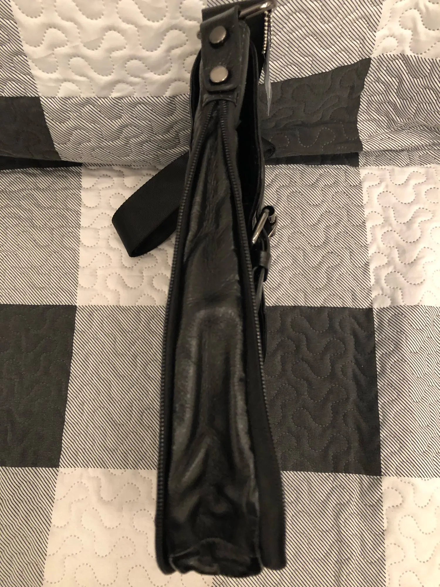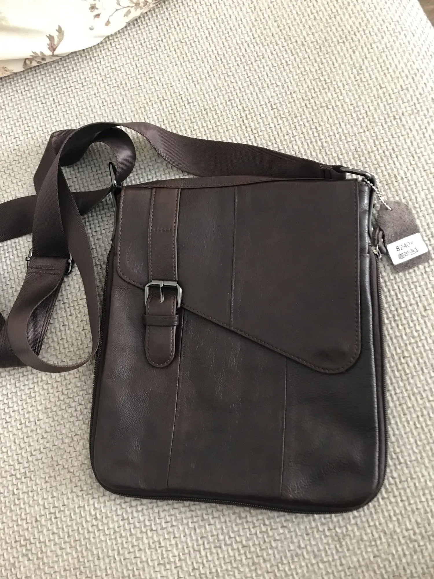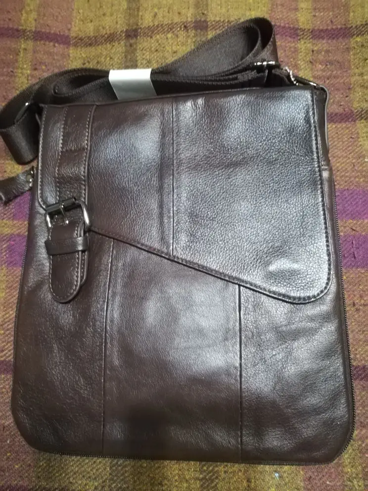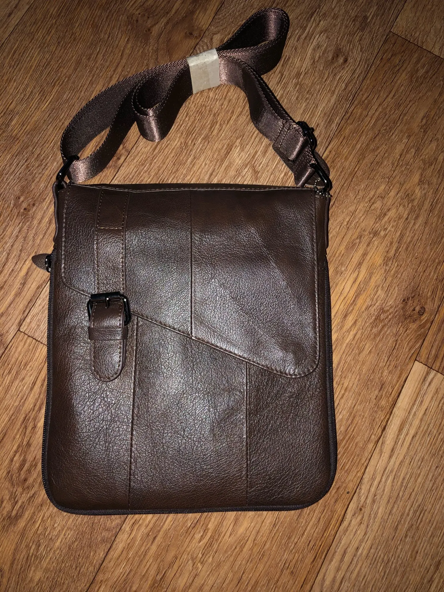 Доставка около двух недель. На мой взгляд сумка выглядит дёшево: кожа тонкая на ощупь, кажется что сейчас порвётся; фурнитура неплохая, но молния не зафиксирована и открывать-закрывать будет неудобно; строчки ровные, есть небольшой запах. Мужу сумка не понравилась. Пожалела, что не купила в магазине города нормальную кожаную сумку. Это конечно же не натуральная кожа, поэтому снимаю одну звезду!