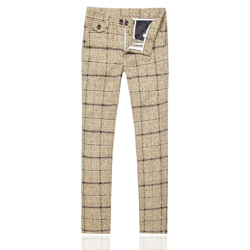 Осенне-зимние Клетчатые Шерстяные мужские классические брюки, панта...