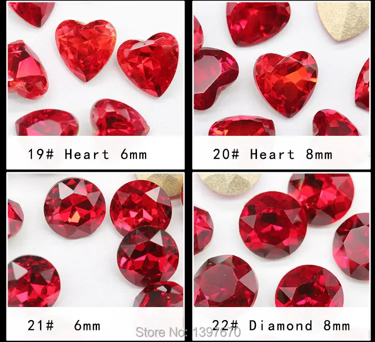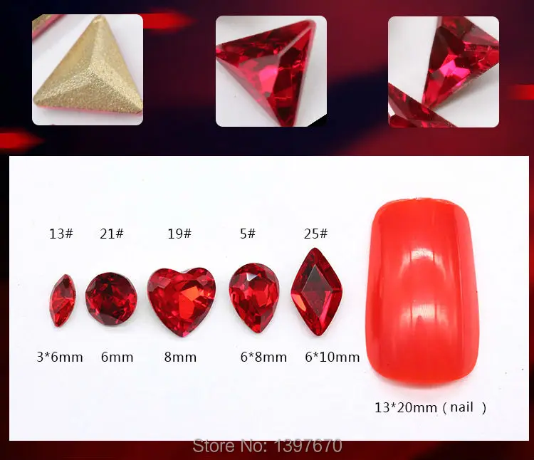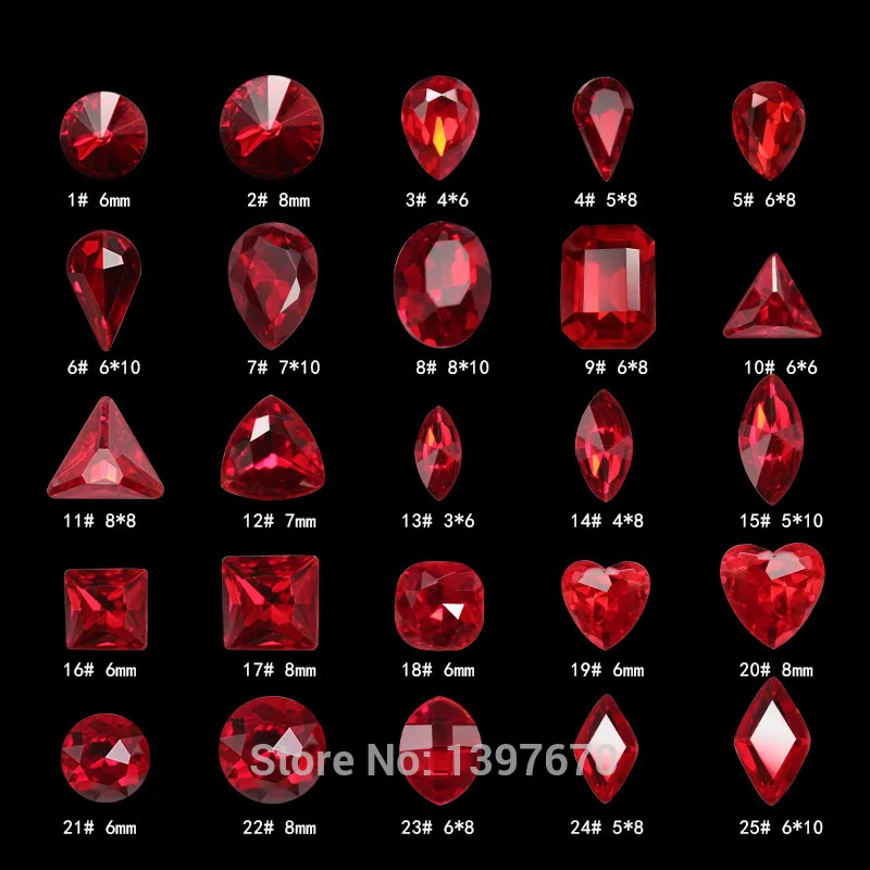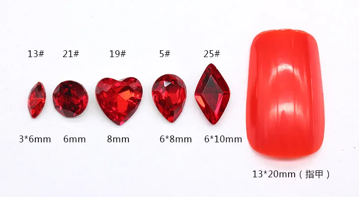20 шт.упак. красные блестящие стеклянные стразы для ногтей, маникюр, Алмазный орнамент, камень, драгоценный камень, 3D ногтей художественные украшения сделай сам