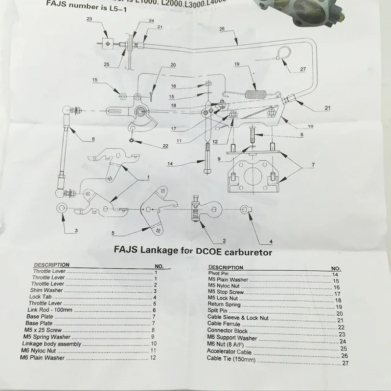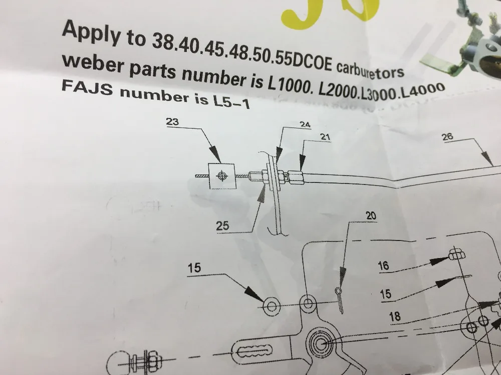 Этот список предназначен для набора дроссельной заслонки для двойных карбюраторов WEBER DCOE