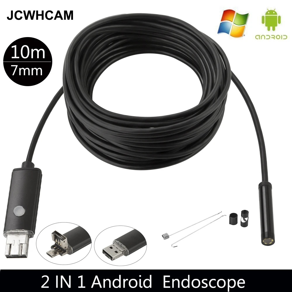 JCWHCAM 10 м 7 мм эндоскоп камера HD USB Android эндоскоп Водонепроницаемый Бороскоп Инспекционная камера эндоскоп для Android ПК