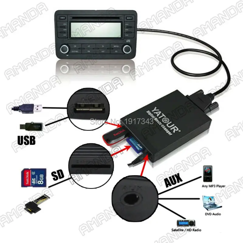 Автомобильный адаптер YATOUR AUX MP3 SD USB музыкальный сменный раз...