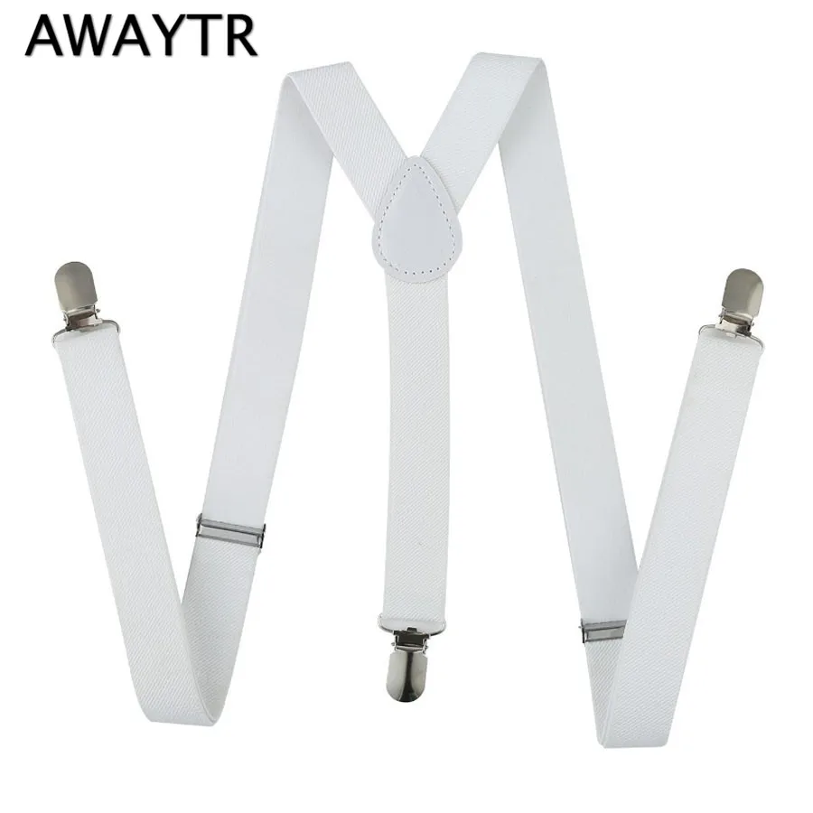 Мужские и женские подтяжки AWAYTR, черные, белые подтяжки с 3 зажимами, 2017, регулируемые подтяжки для рубашек, для костюмов, подтяжки с пряжками