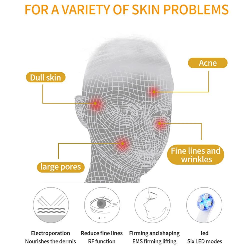 Electroporation Mesotherapy LED Photon RF Radio Frequency EMS Skin Rejuvenation Face Lifting Tighten Massage Beauty Machine