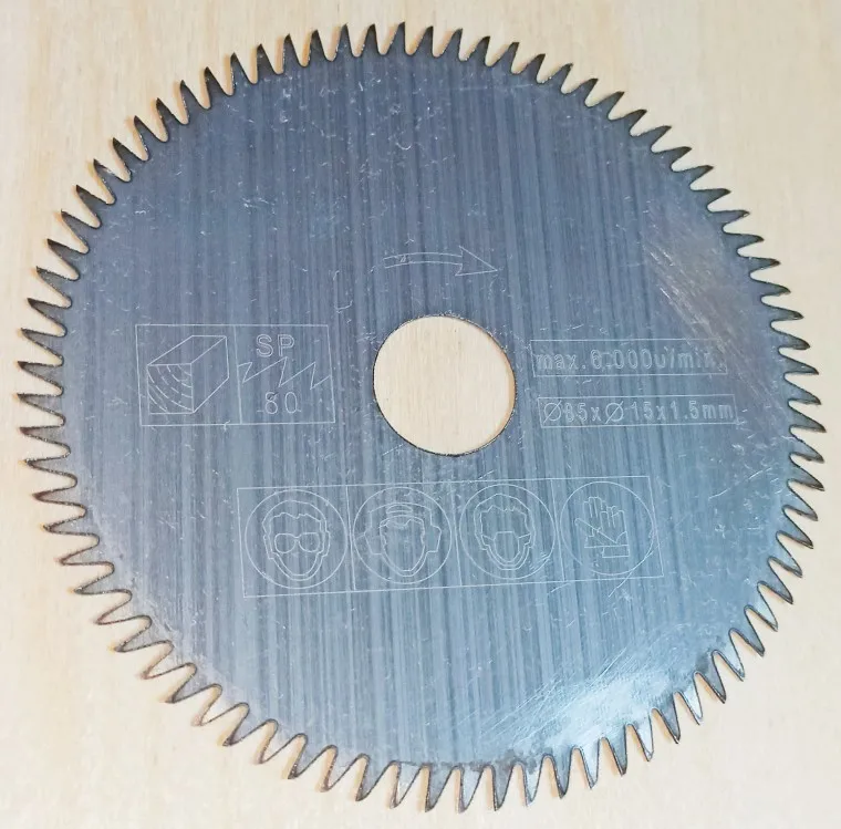 На вид норм, ЦО - 15, ширина пила на 80 зуб.-0,95 (металл 0,65)написано дерево, я брал для пластика. 36 зуб. - 2,20 ширина пила (металл 1,20), (на фото можно разобрать толщину диска - это враки) производитель LV electrics дальше не разобрать. Успею опробовать в деле - отпишусь. На фото сверху - оригинал Rockwell по камню.