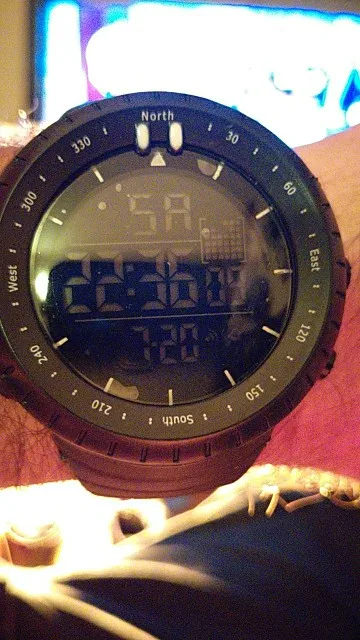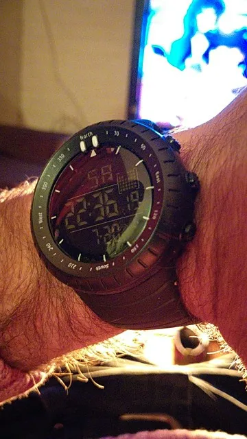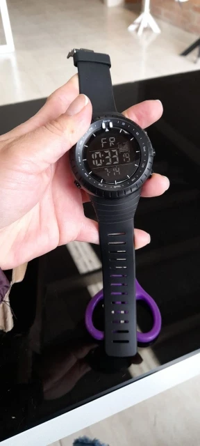 Это то же самое, что на картинке, в хорошем состоянии, хотя я ожидал чего-то более профессионального, но я получил то, что мне нужно, в темноте светится секундомер, и вы можете установить будильник, кроме того, у него есть календарь