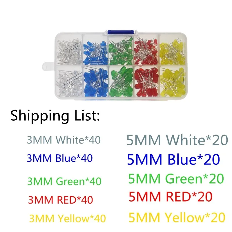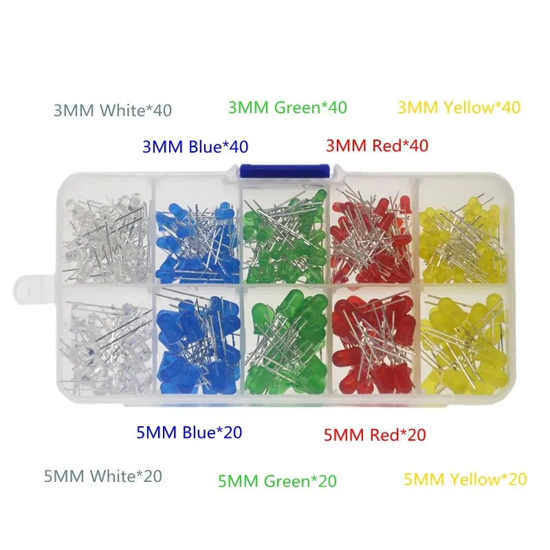 300 шт. 500 шт 3 мм 5 мм светодиодный светильник белого и желтого цвета красного, зеленого и синего цвета смешанный набор "сделай сам" светодиодный s Набор 3V 20mA