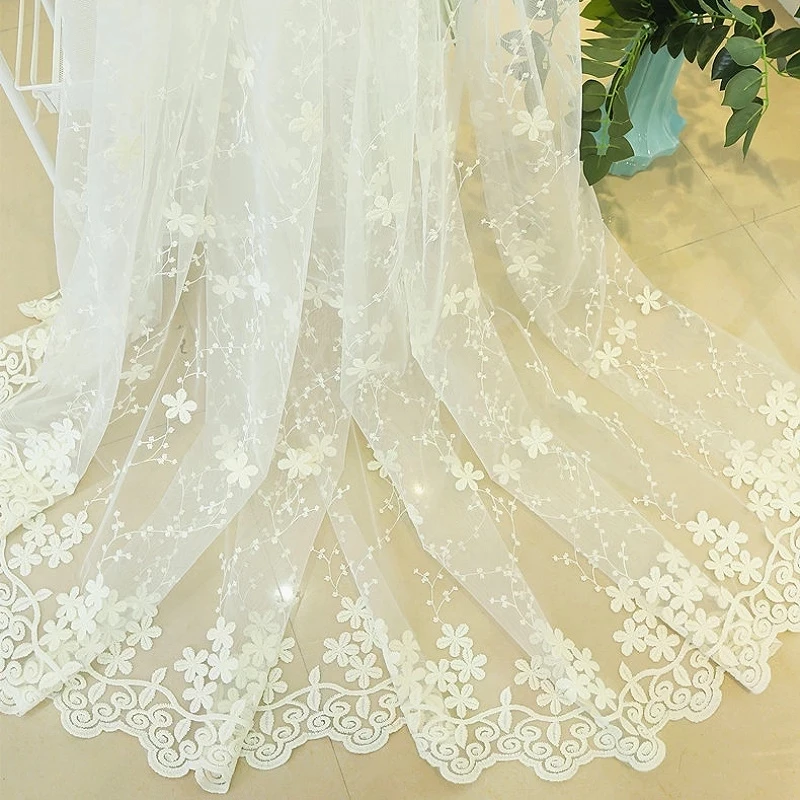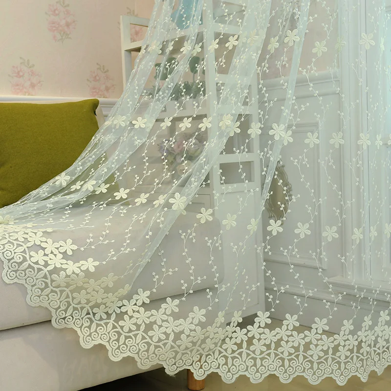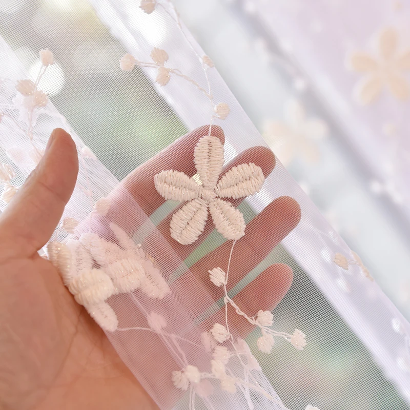 Красивые кружевные шторы, прозрачная вышитая Тюлевая розовая вуаль с цветами в деревенском стиле для гостиной, для девочек, для комнаты, бежевые, синие шторы P058Z