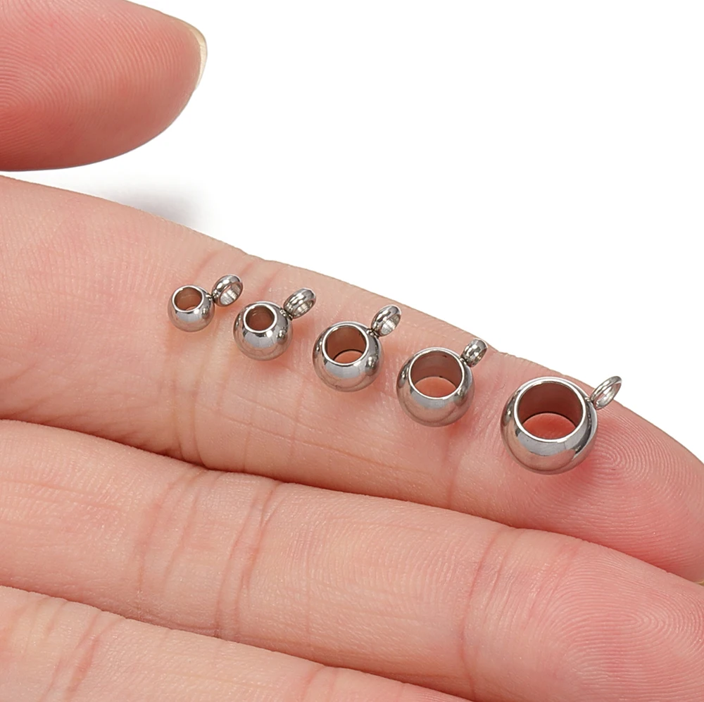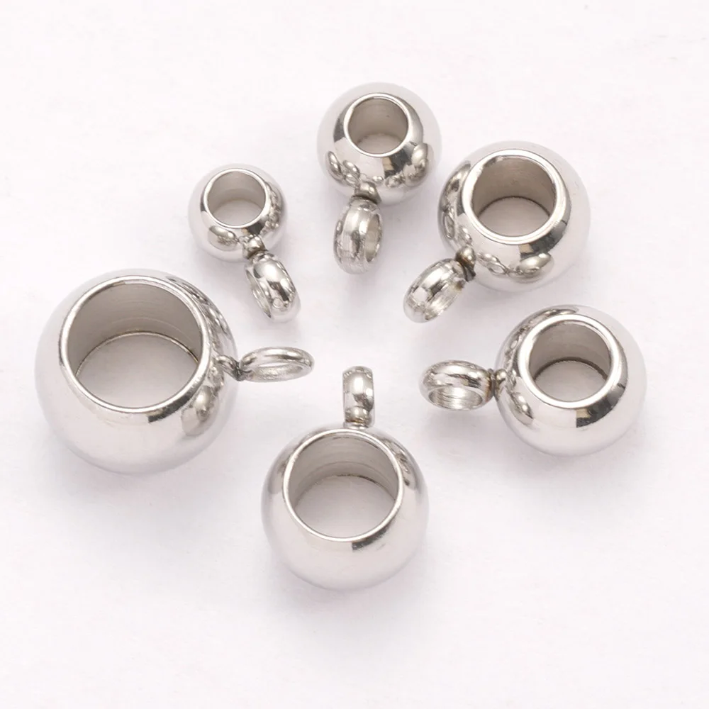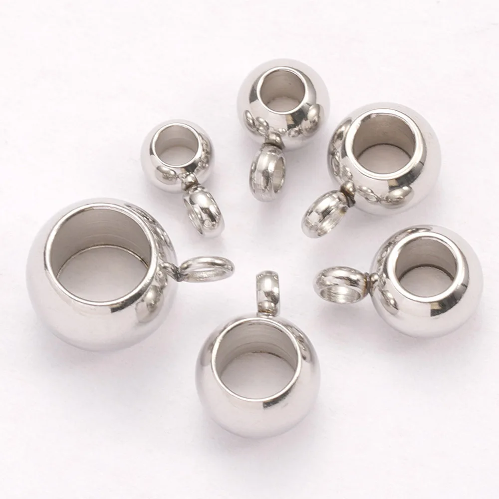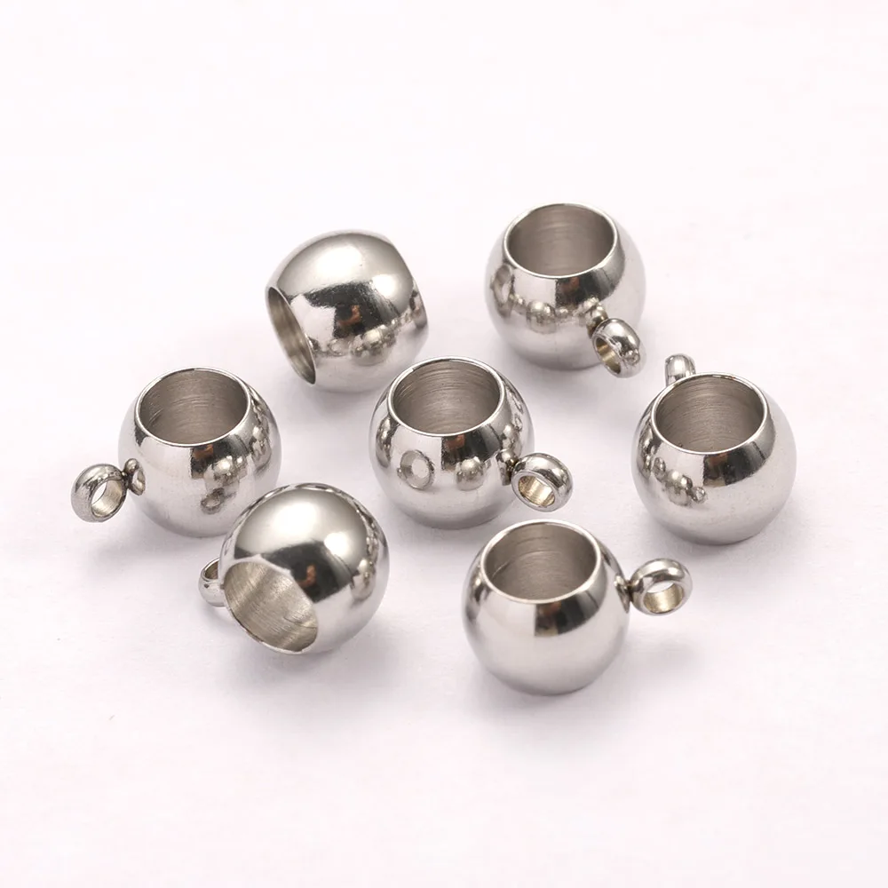 Бусины-разделители из нержавеющей стали для подвесок, зажимы для подвесок, зажимы для подвесок, серебристые Круглые бусины для поделок, фурнитура для изготовления ювелирных изделий, отверстие 2-4 мм, 10 шт.