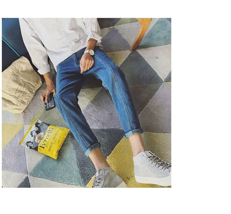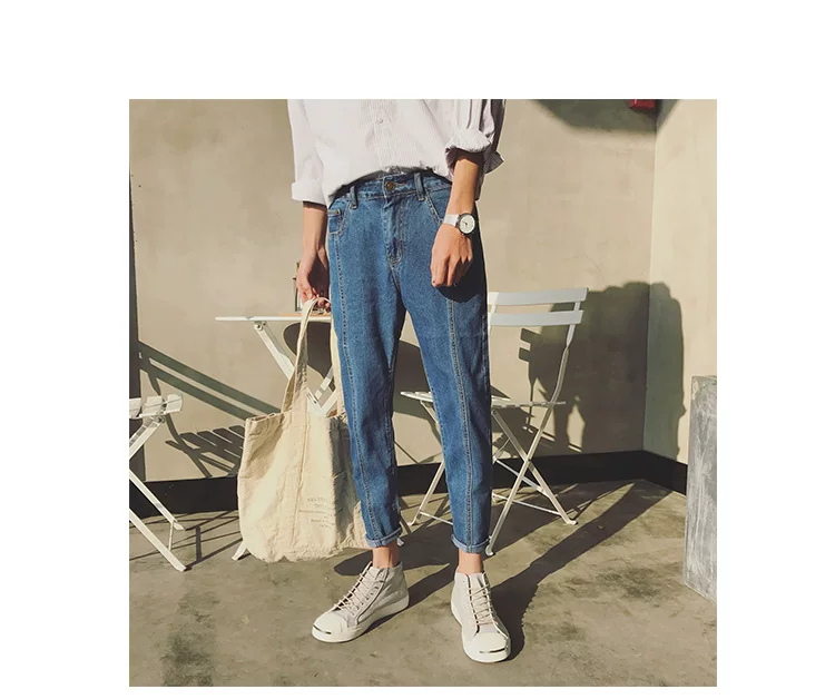 Джинсы-султанки мужские прямые повседневные, Модные узкие брюки из денима, эластичный пояс, длинные штаны, брюки-карандаш, синие, 3433