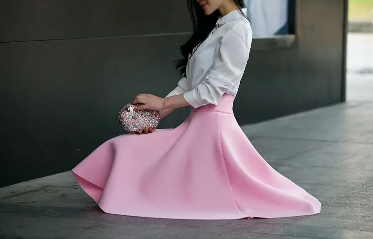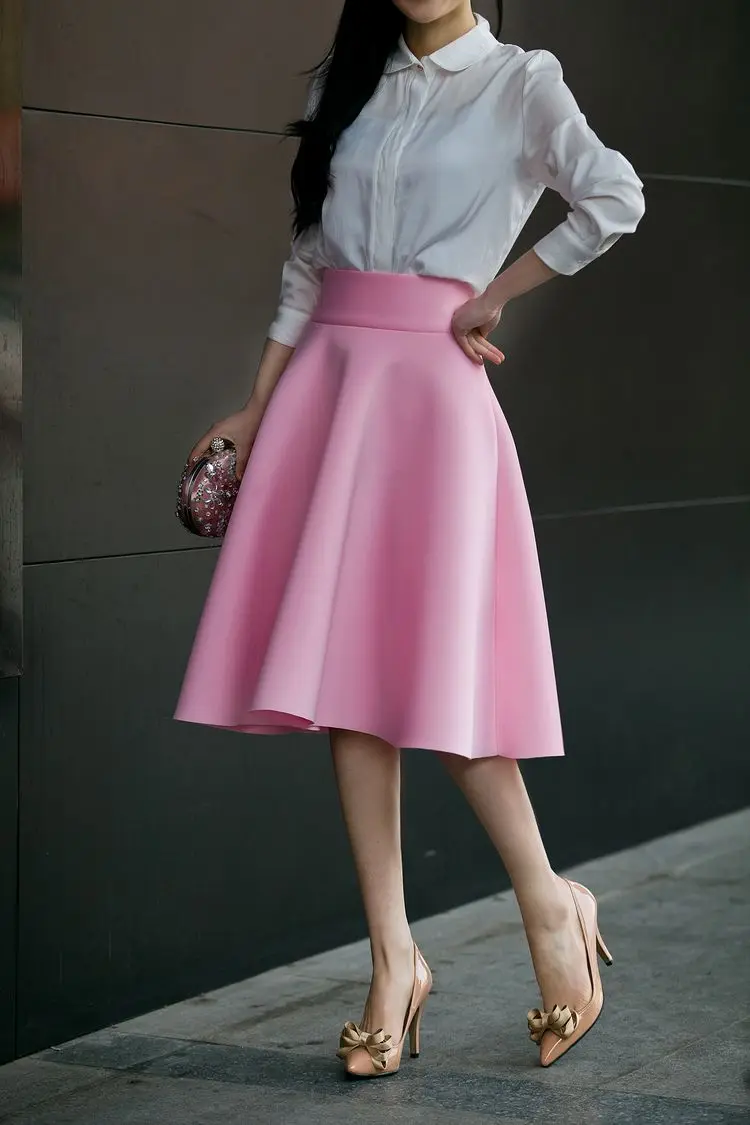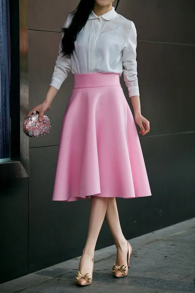 Юбка-миди до колен, с завышенной талией, розовая, черная, красная, синяя, 5XL, размера плюс, 2019