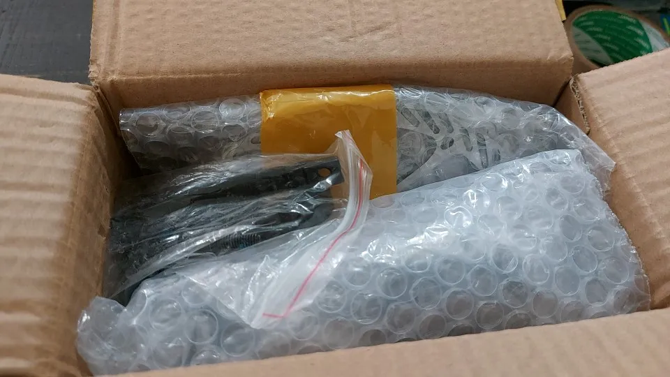 Доставка быстрая! Упаковано отвратительно! в одном пакете всё вместе и болты и тормоза, соответственно все поцарапалась! в эту пупырку можно два суппорта по отдельности упаковать и было бы всё нормально! Я думаю и суппорта свалены у них в одну кучу. Короче минус звезда за упаковку. Обошлись в 1.5 тыс по акции за пару. работают нормально , оригиналы но по внешнему покоцаному виду можно подумать что нет.