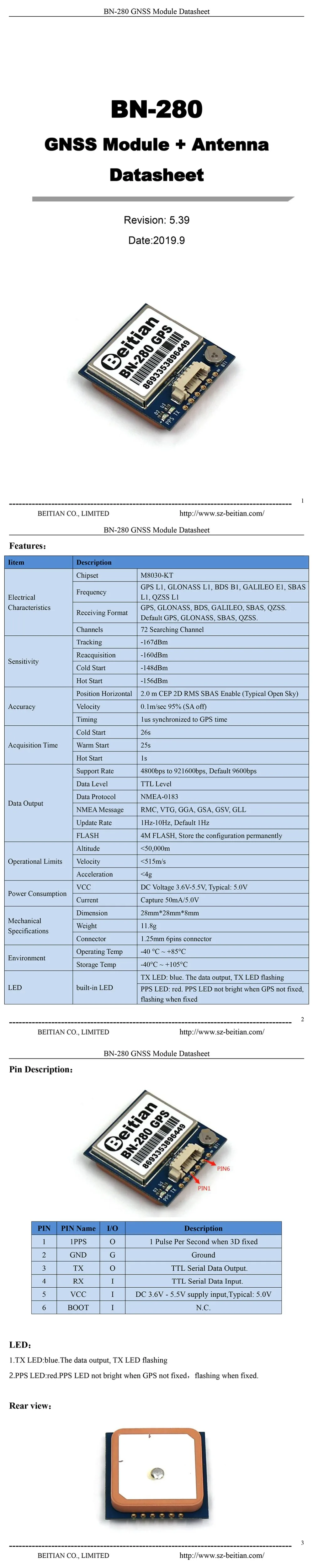 BEITIAN G-MOUSE UART TTL уровень GPS GLONASS двойной GNSS модуль с 4M FLASH BN-280