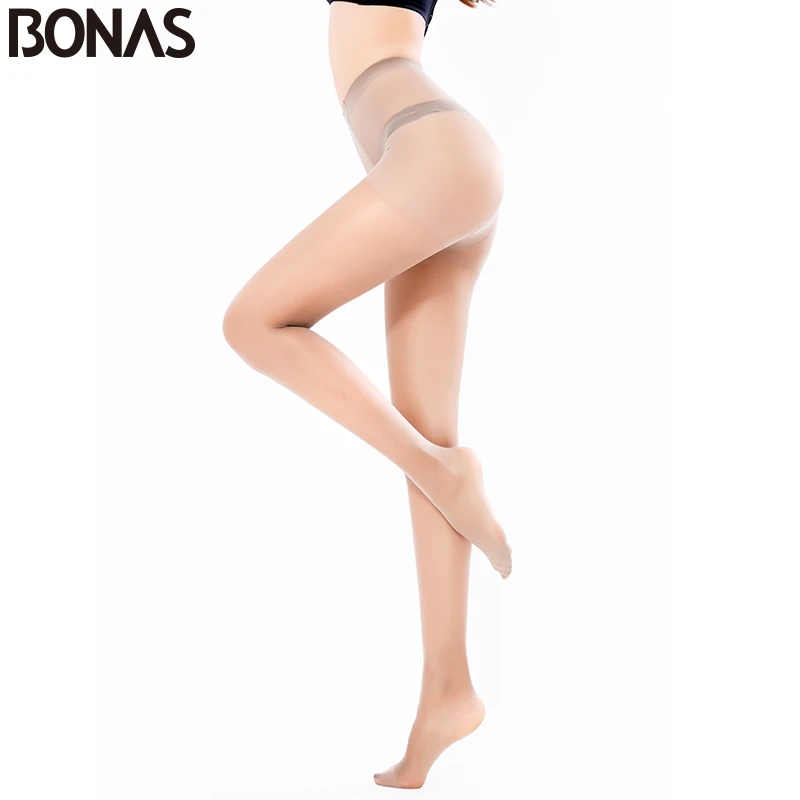 Женские нейлоновые колготки BONAS 30D, однотонные облегающие эластичные длинные бесшовные колготки из полиэстера для девочек на лето