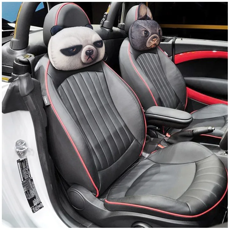 Чехлы CHIZIYO для автомобильных сидений с 3D принтом кошек, собак, панд, кроликов, чехлы на автомобильные сиденья, Подголовники для шеи, плюшевые подушки, подголовник безопасности без наполнения