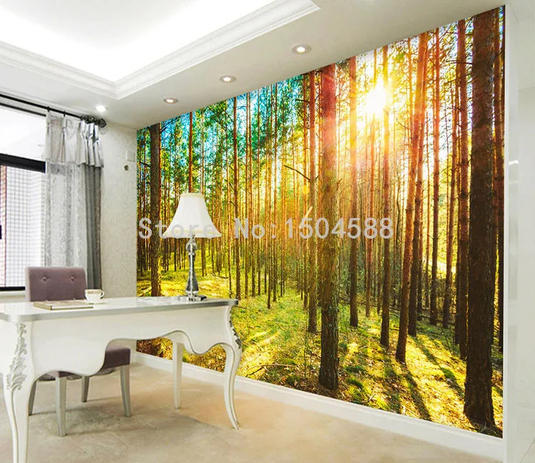 Sunshine лес пейзаж, природа обои Гостиная, спальня, телевизор, диван, красивый фон, настенная живопись, 3D Paisagem