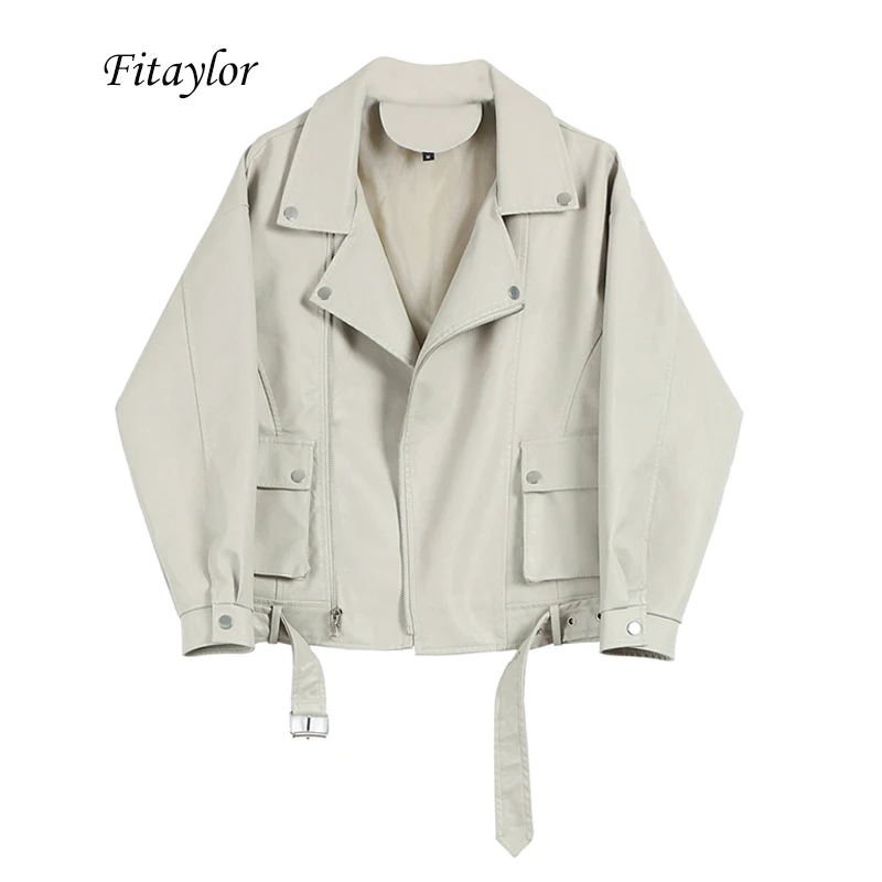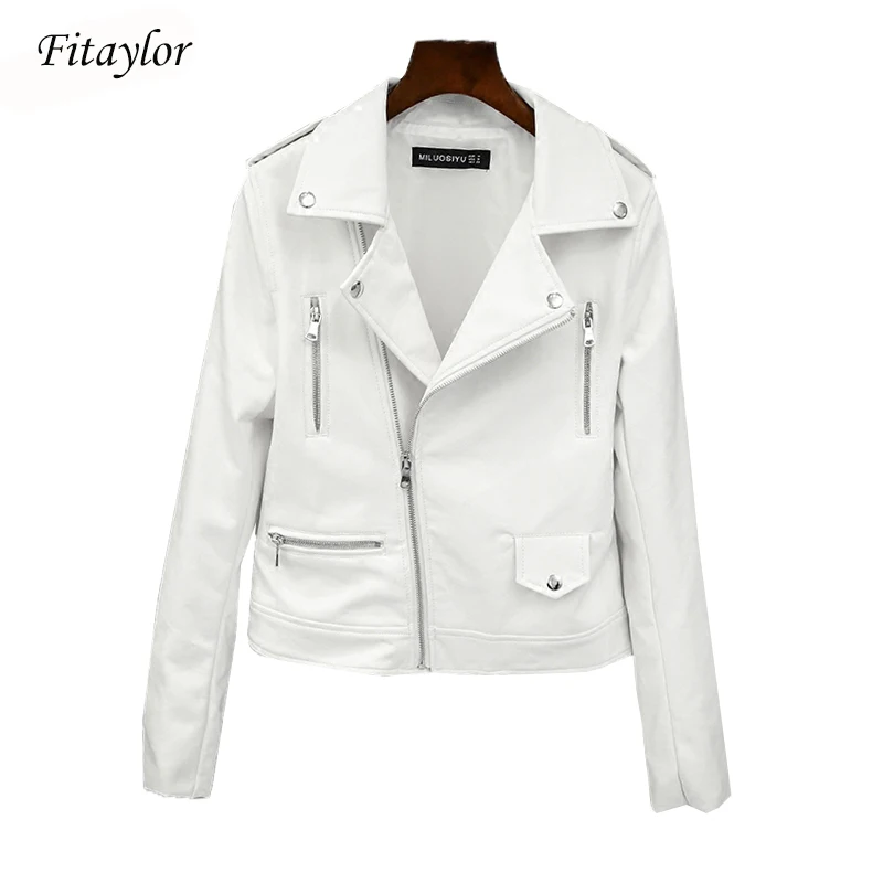 FitaylorНовинка 2022 года; Сезон весна-осень; Женская Байкерская кожаная куртка из мягкой искусственной кожи в стиле панк; Повседневная Верхняя одежда; Белая куртка из искусственной кожи