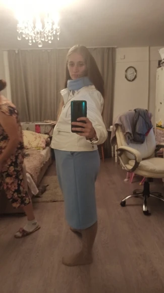 Заказала 10/16 а пришла уже 10/20 сумасшедшая доставка, спасибо огромное. Что касается курии, то она отпадная. Очень хорошего качества на ОГ 100 взяла L села хорошо, м в руки бы не сошлась если застегивать на замок. Рост мой 164 см. Длинна моей руки 55- 57 см.
