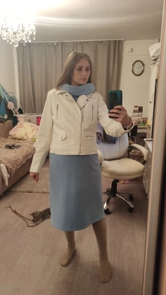 качество кожзама и пошива отличное. на ОГ 87, ОТ 68 прям впритык, только на тонкую водолазку.