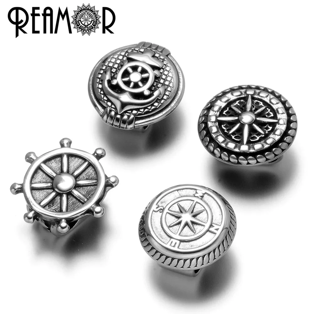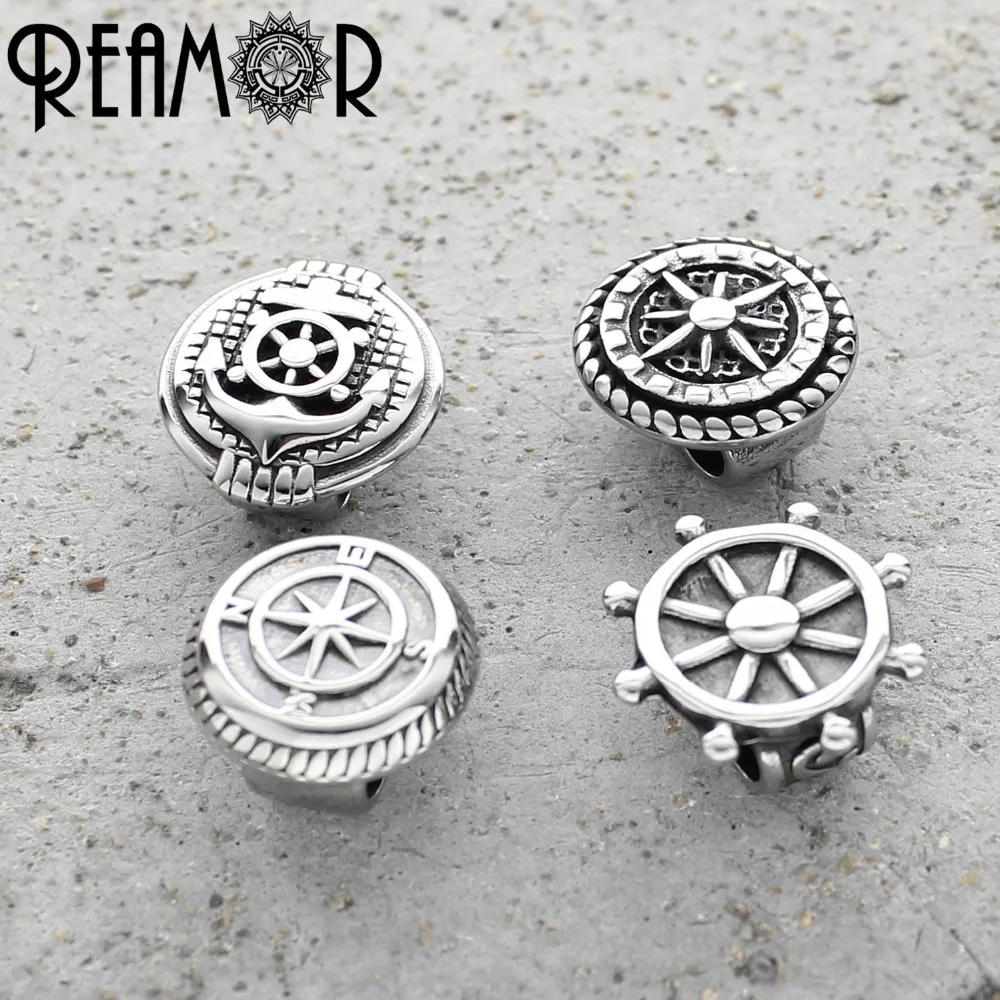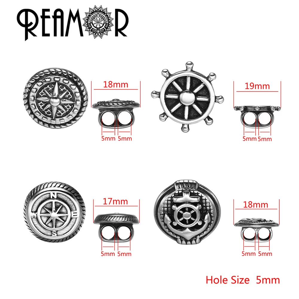 REAMOR из нержавеющей стали, анкер, штурвал компас, 5 мм, два отверстия, европейские амулеты, бисер для изготовления ювелирных изделий своими руками, двойной кожаный браслет