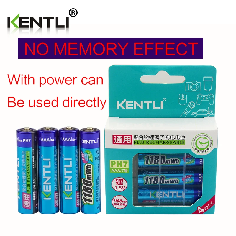 KENTLI 8 шт. без эффекта памяти 1,5 В МВтч AAA Полимерные литий-ион...