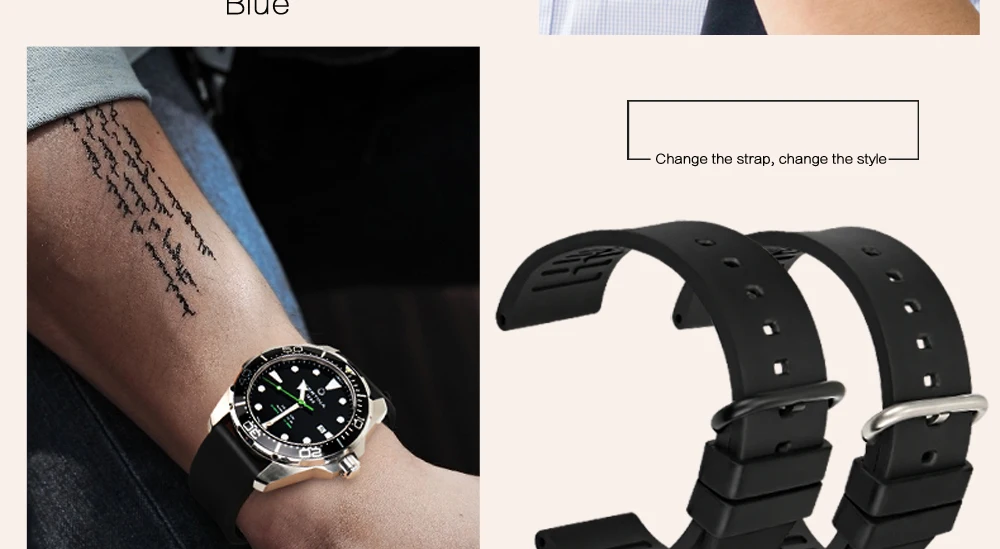 Ремешок MAIKES для часов, спортивный резиновый браслет для дайвинга...