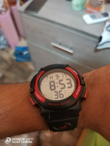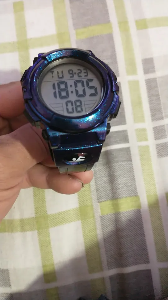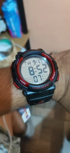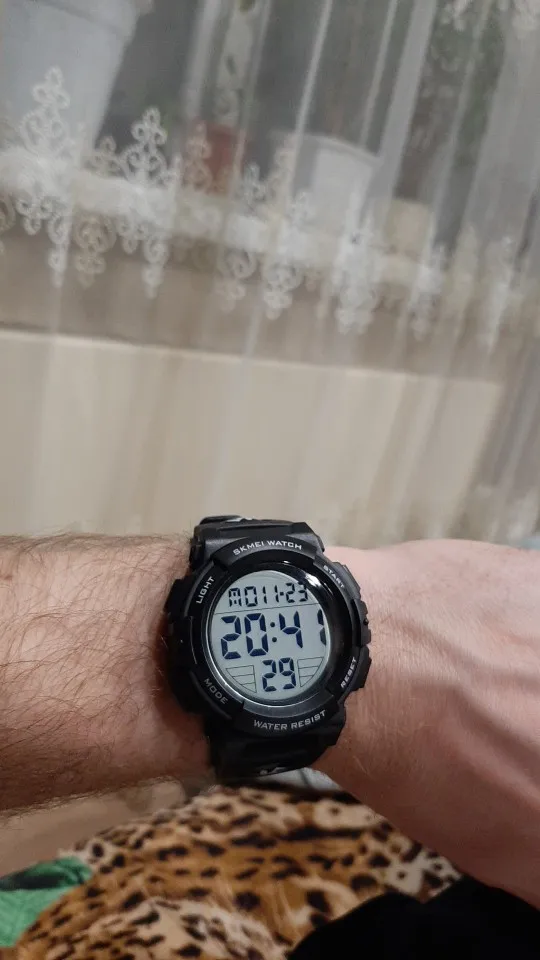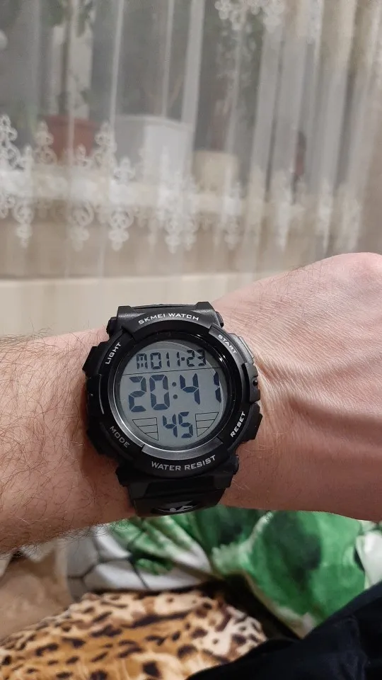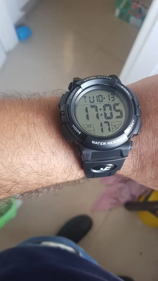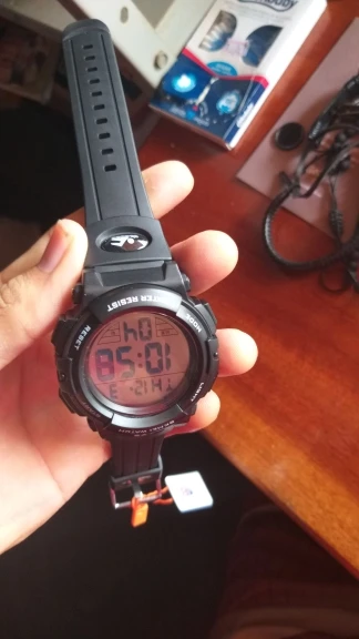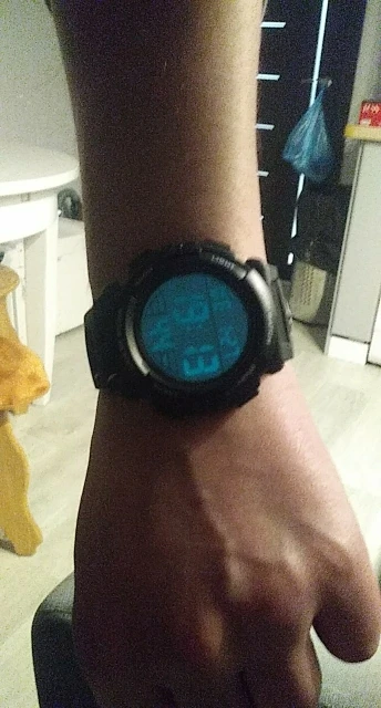 Прибыло 20 дней, продукт более красивый лично, это размер, который мешает запястье, выглядит жестким, будильник, секундомер, дата и время, очень красивые и нейтральные часы черного цвета. Отличная покупка здесь, в Бразилии-это цена того, что не будет иметь такого же качества