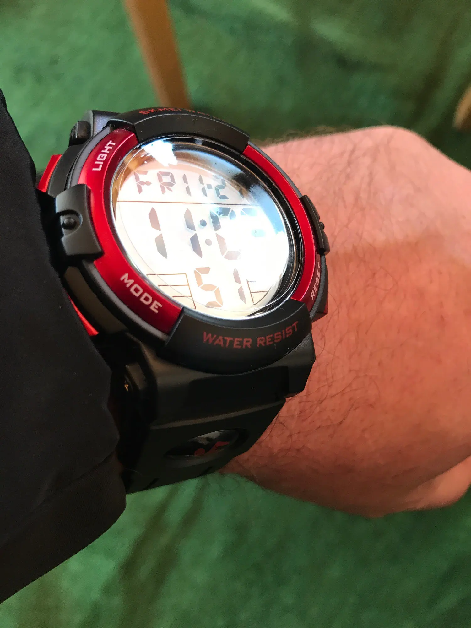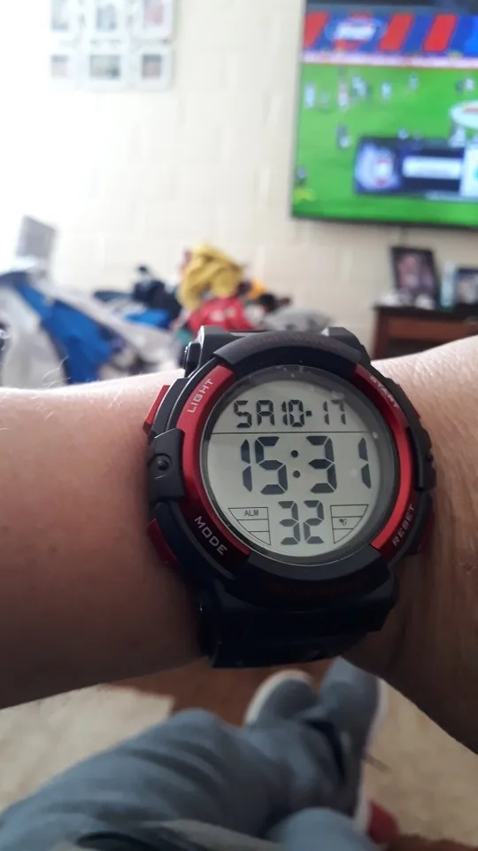 Я купил это, чтобы носить его во время езды на горном велосипеде, чтобы не повредить мои дорогие G-SHOCK. Это приемлемо для хорошего качества за 8 фунтов... не ожидайте слишком много. Основные функции с приличной зеленой подсветкой. Большие цифры для чтения в движении. Руководство показывает, что подходит для плавания. Пережила путешествие в Jiffy мешке, поэтому должна быть достаточно прочной! Спасибо, я рад.