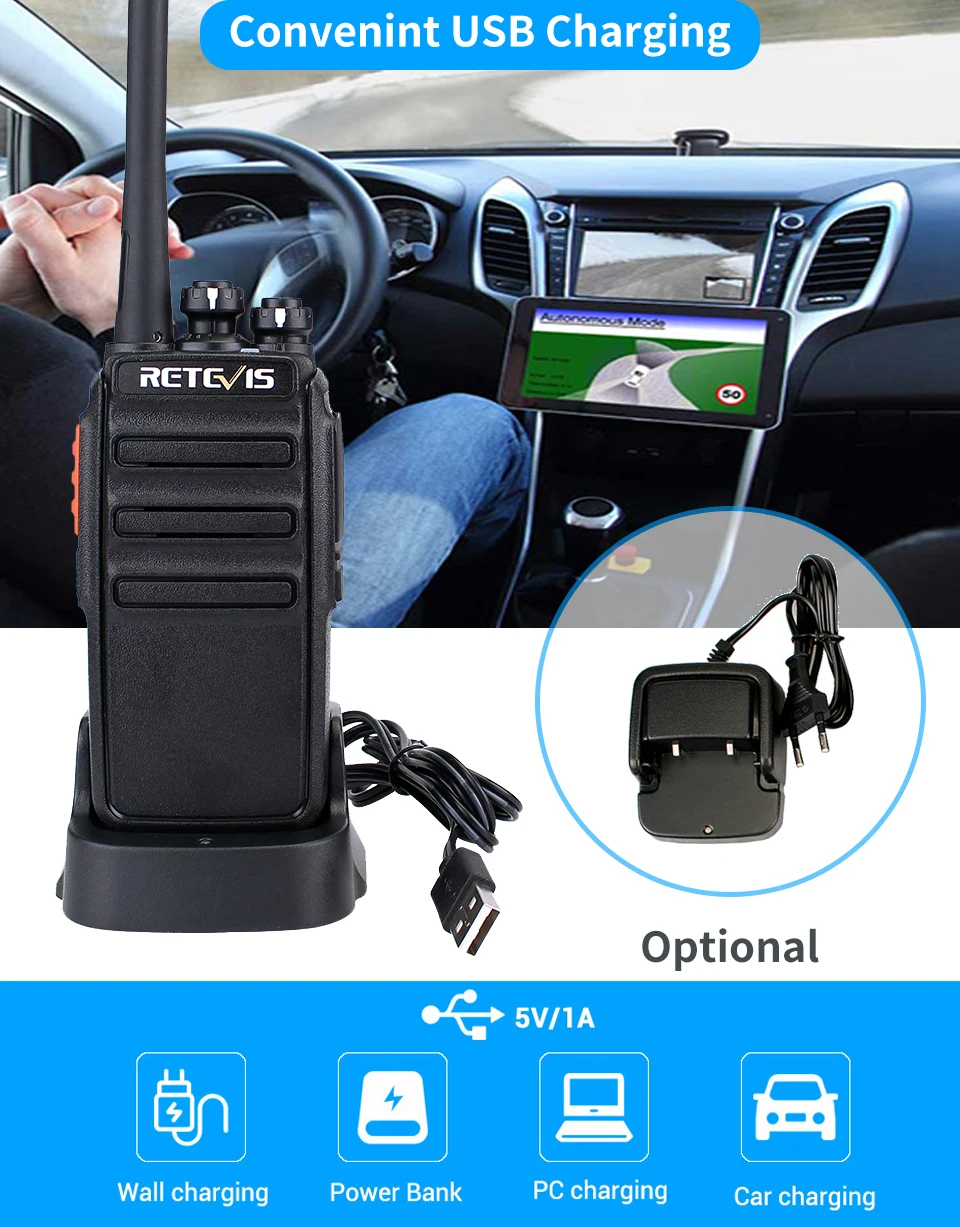 Usb-зарядка позволяет заряжать радиоприемники Retevis RT24 в любом месте без ограничения базы зарядки.