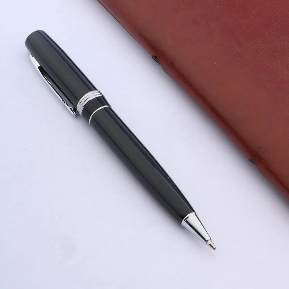Шариковая ручка, чернаясеребристая, с прямым зажимом