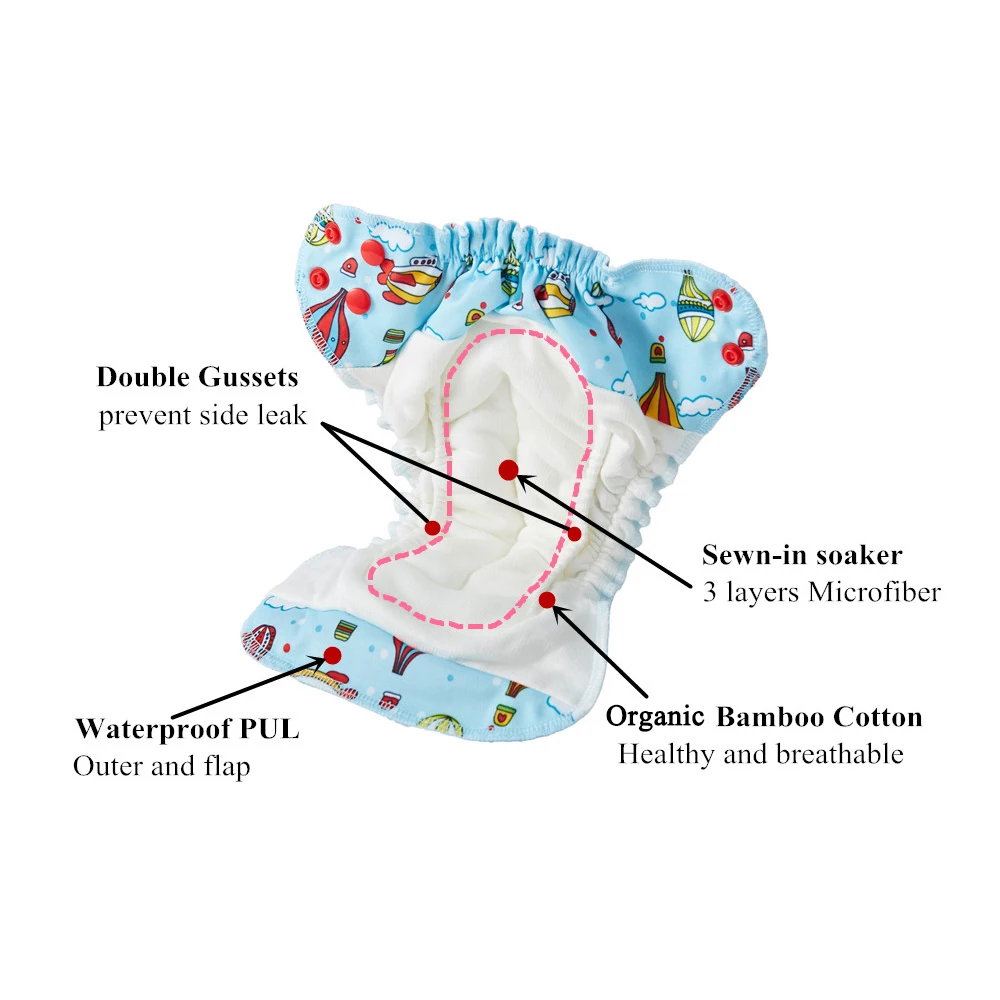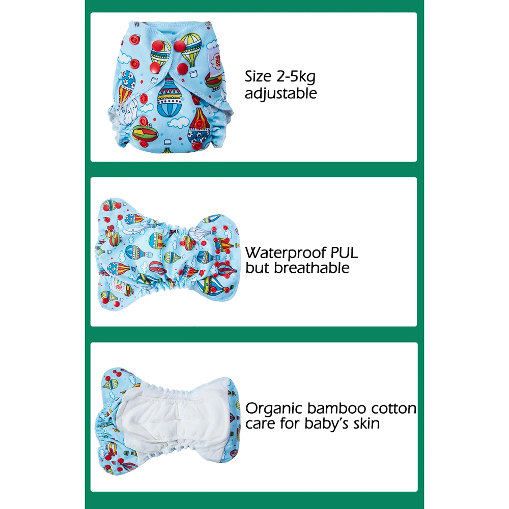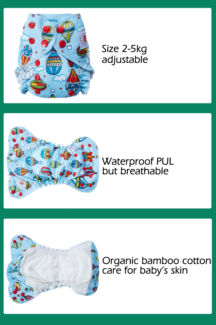 10 шт., детские подгузники из бамбука, 3-5 кг