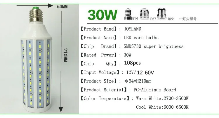 Тип цоколя: E27 B22(Цоколь E27 по умолчанию, если вам нужна другая цоколь, пожалуйста, оставьте сообщение. Спасибо)